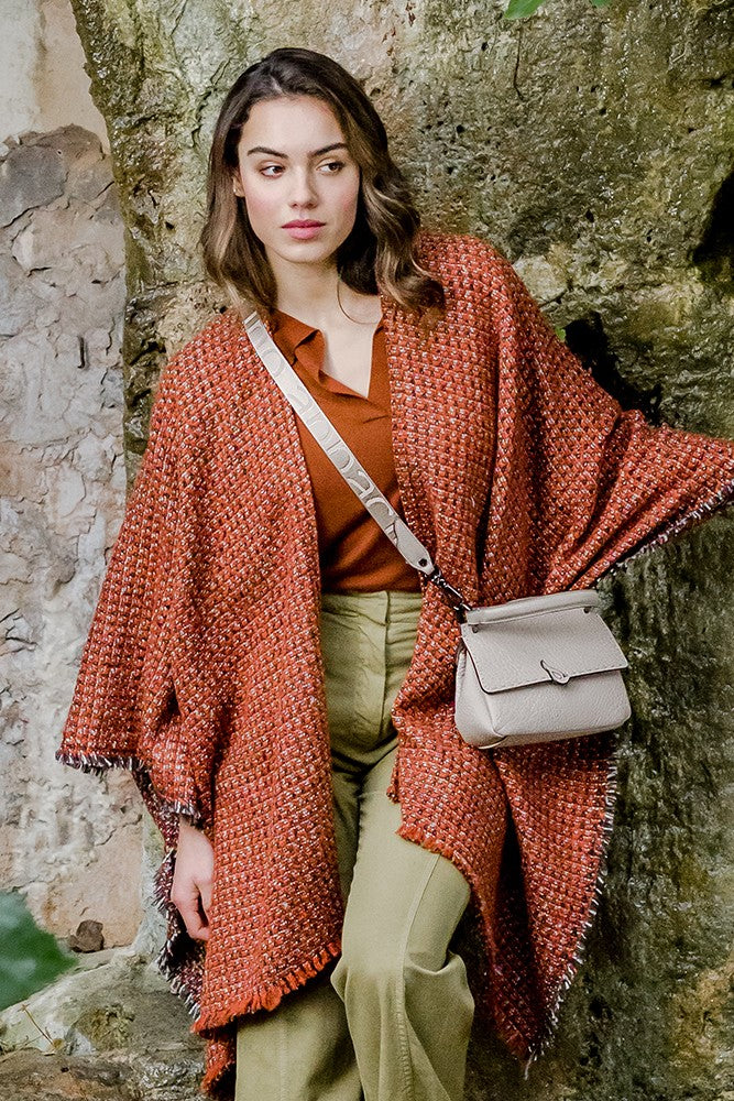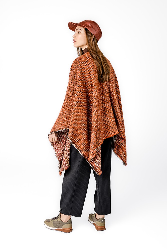 Women’s poncho made in a beautiful mottled finish, and dyed in fresh colours, ideal to bring an extra light in the greyest and coldest days. Its fabric is ultra-soft to the touch and very warm, perfect for autumn and winter days. Its ends are frayed, giving it a casual and youthful look. The ideal complement to achieve a great look. One size.