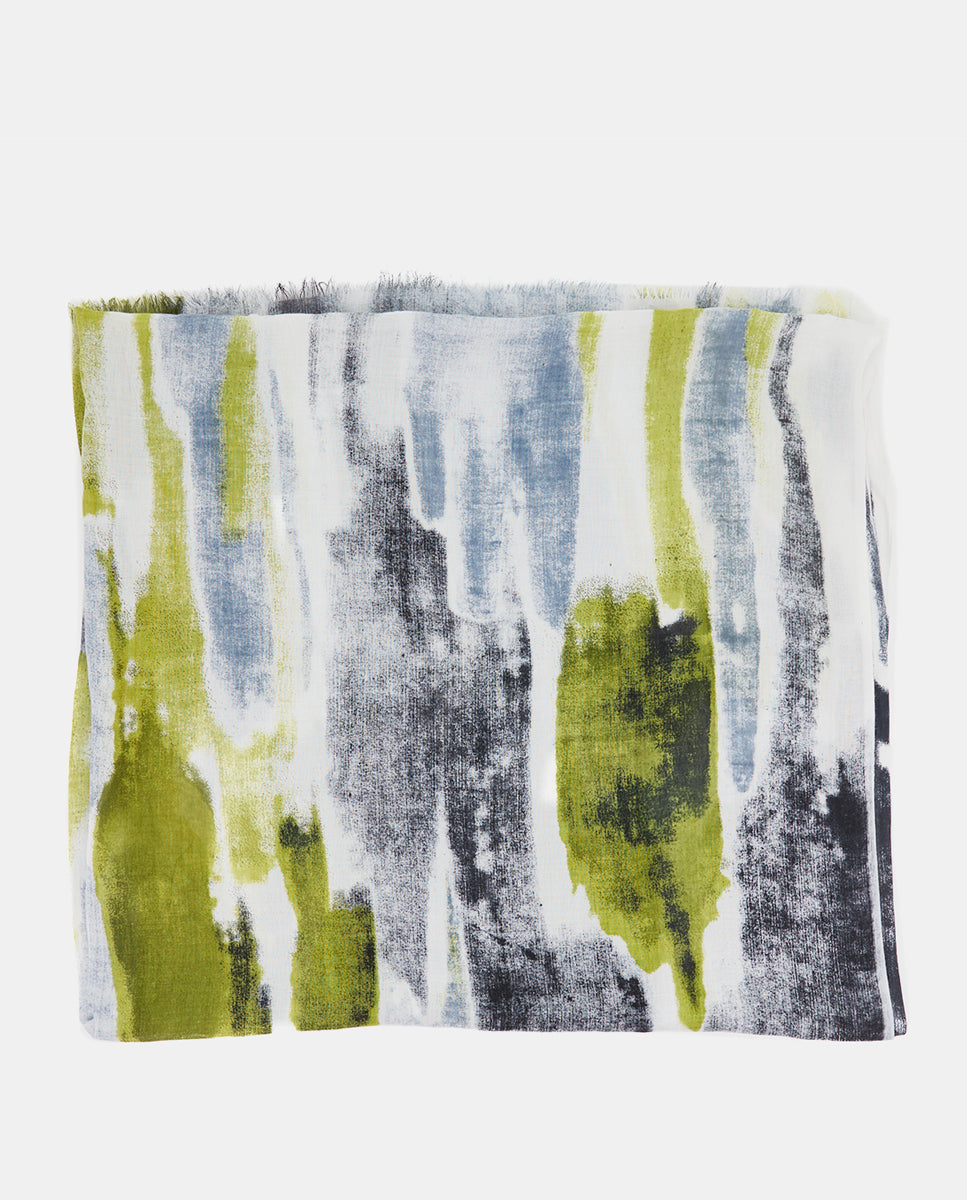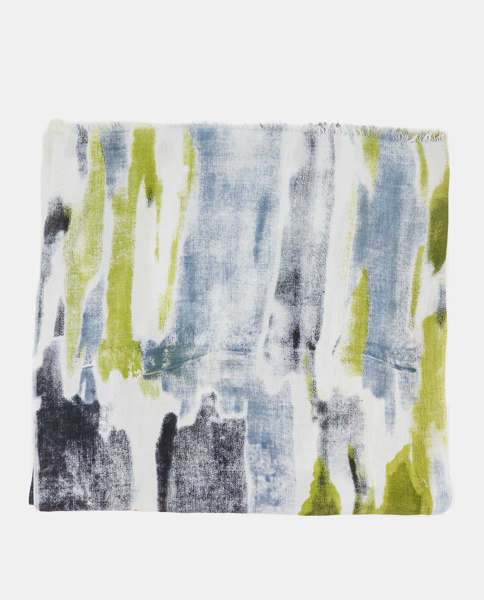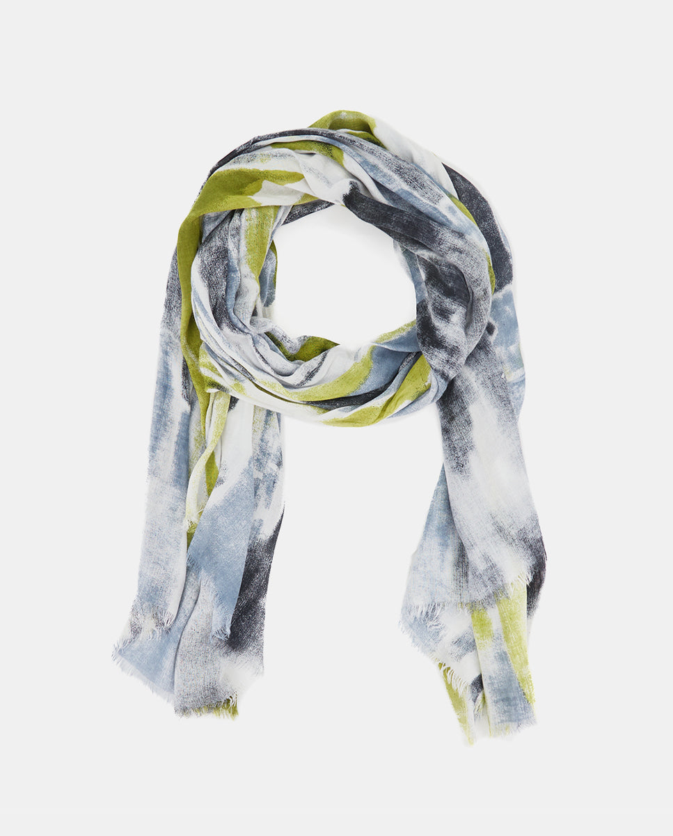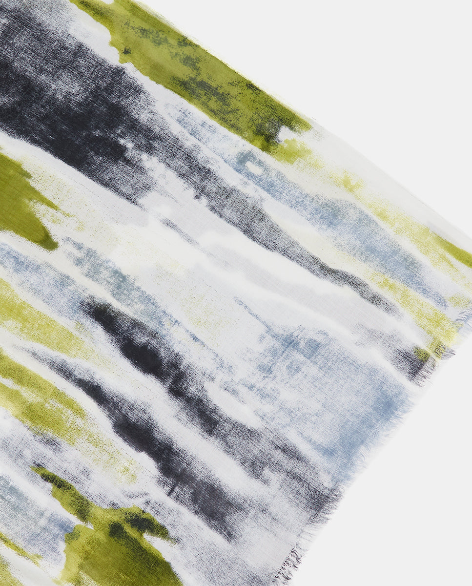 Soft, lightweight wool scarf with a retro geometric print. A versatile and functional accessory, ideal for any occasion. Frayed edges.