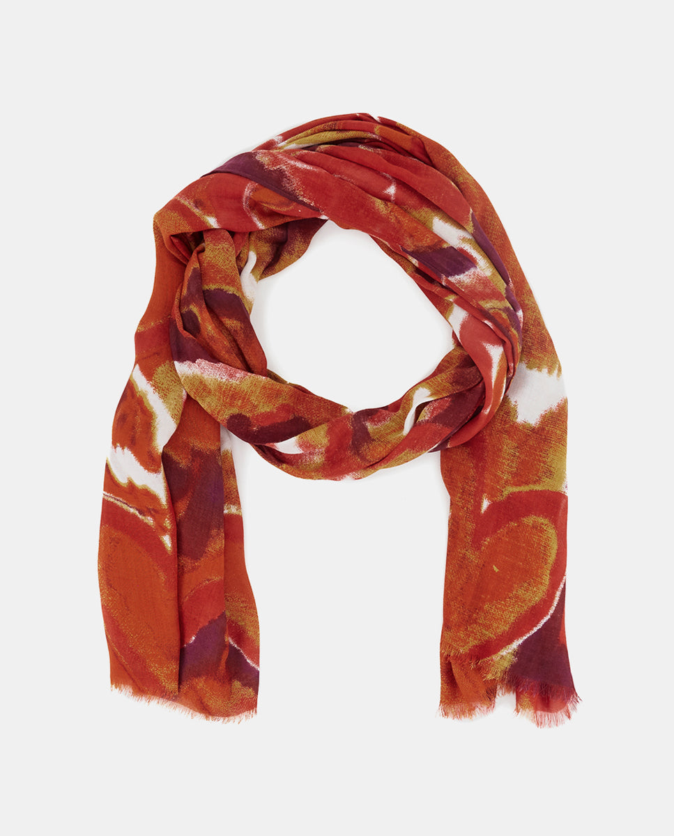Abbacino Accessories Scarves Wool Scarf With Orange Abstract Print | Orange