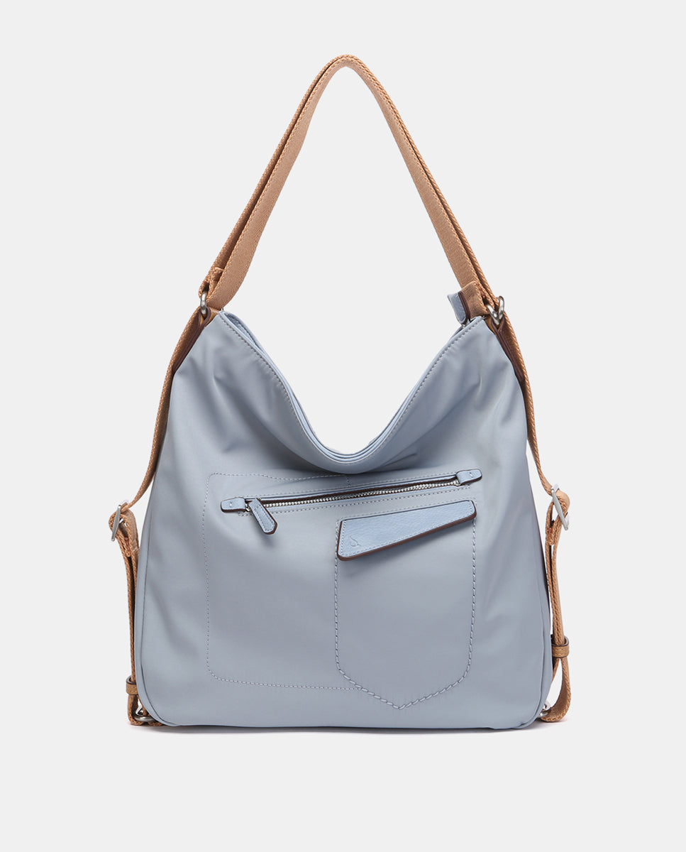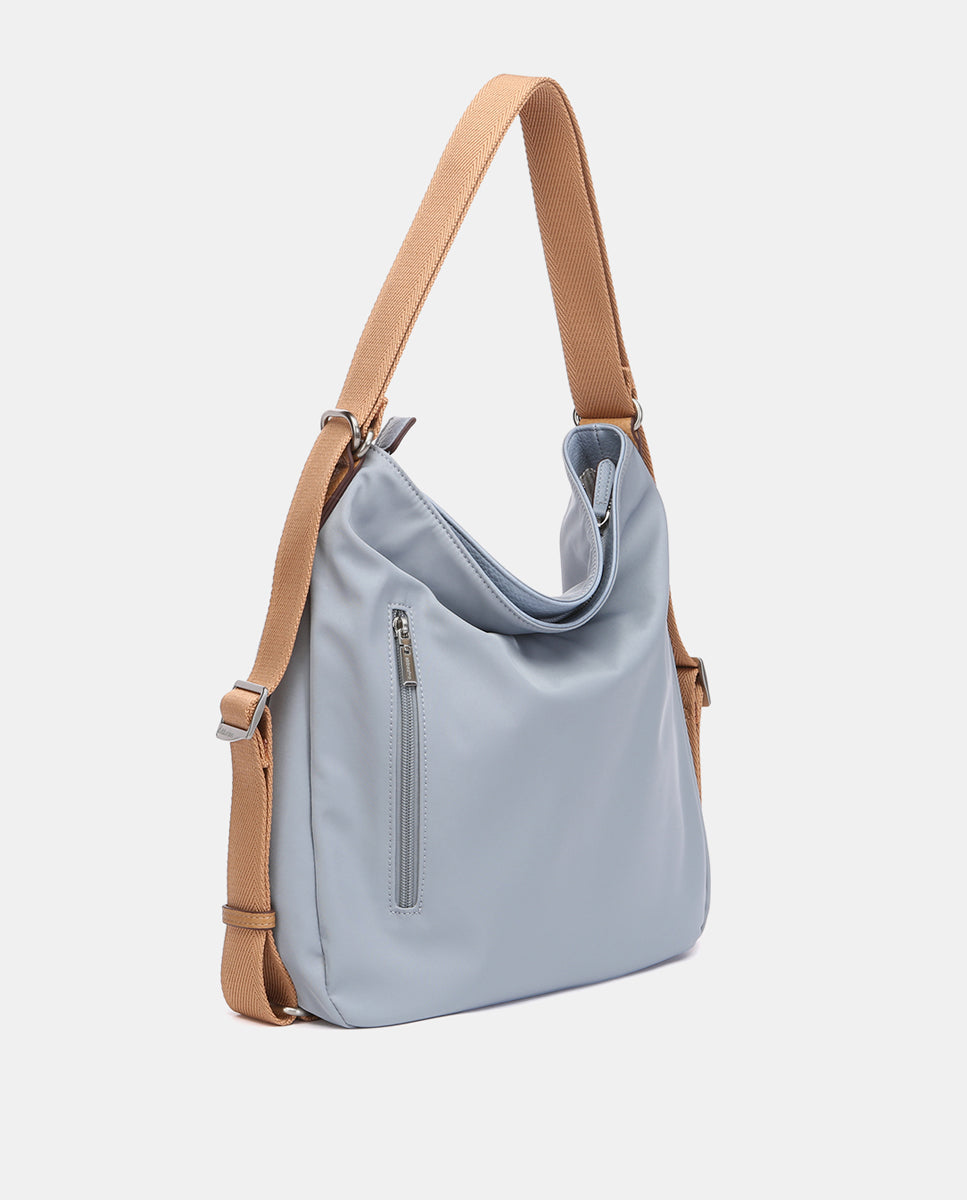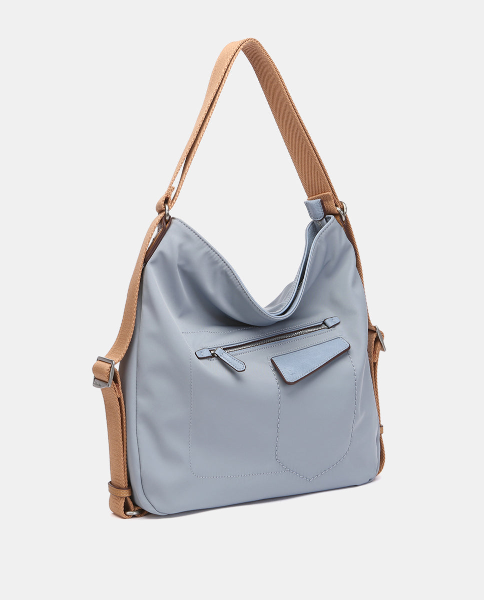 Convertible bag into a backpack made from recycled materials and with a sporty style. With a very casual design, it is a very comfortable, practical, and lightweight model, ideal for daily use. Its main features are: