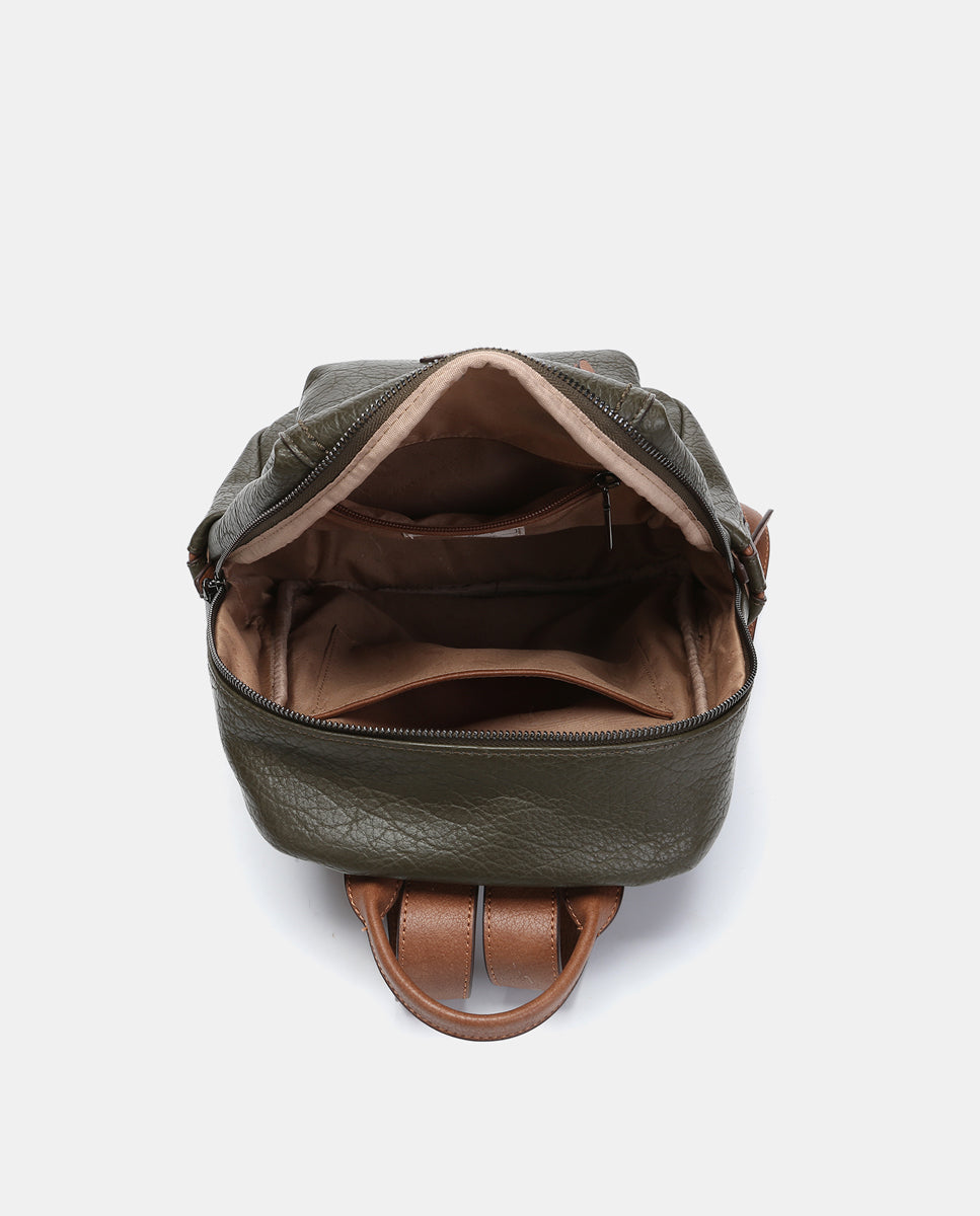 Women’s backpack made from recycled materials, with a classic, simple, and timeless design, ideal for everyday use. Practical and stylish, designed for comfort and organization. Its main features are: