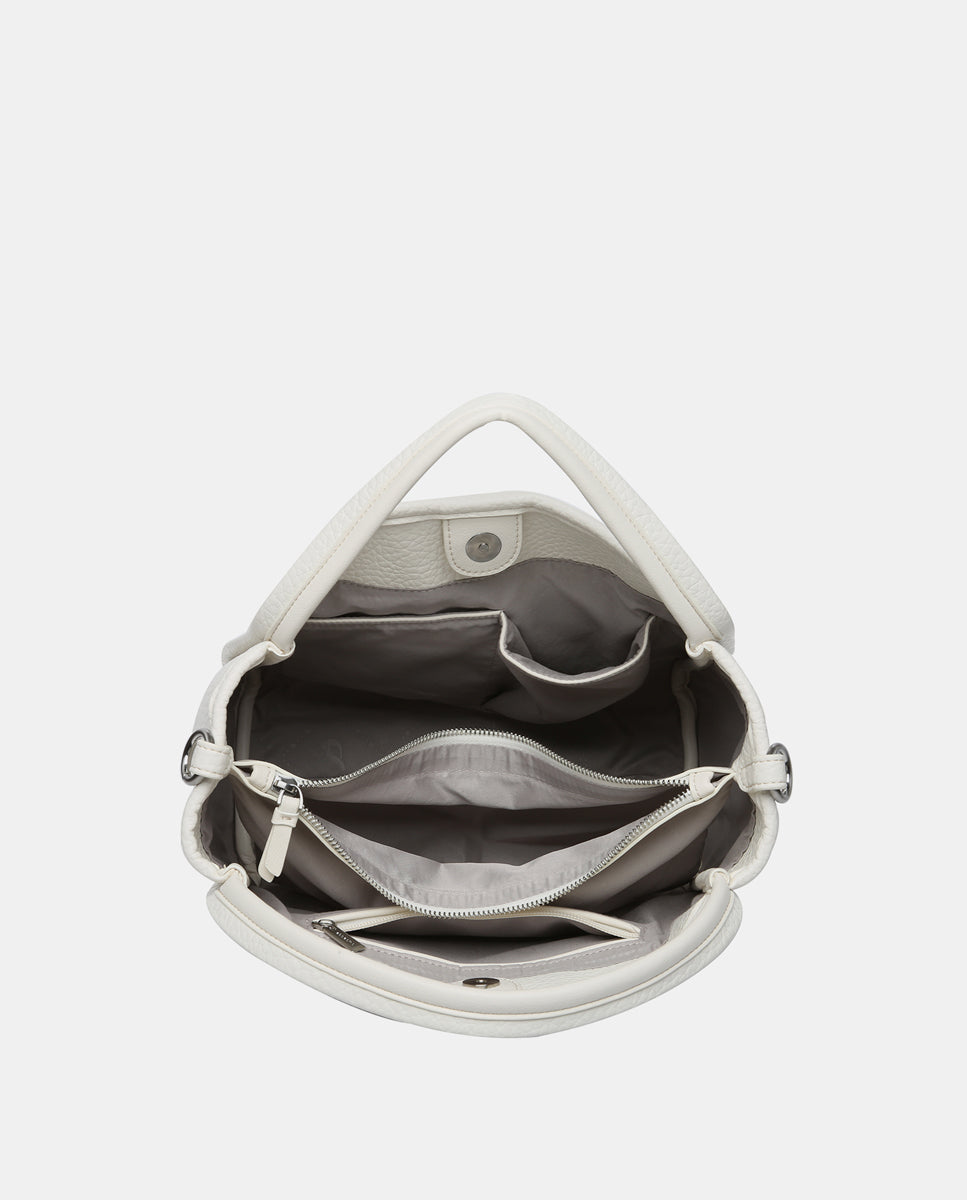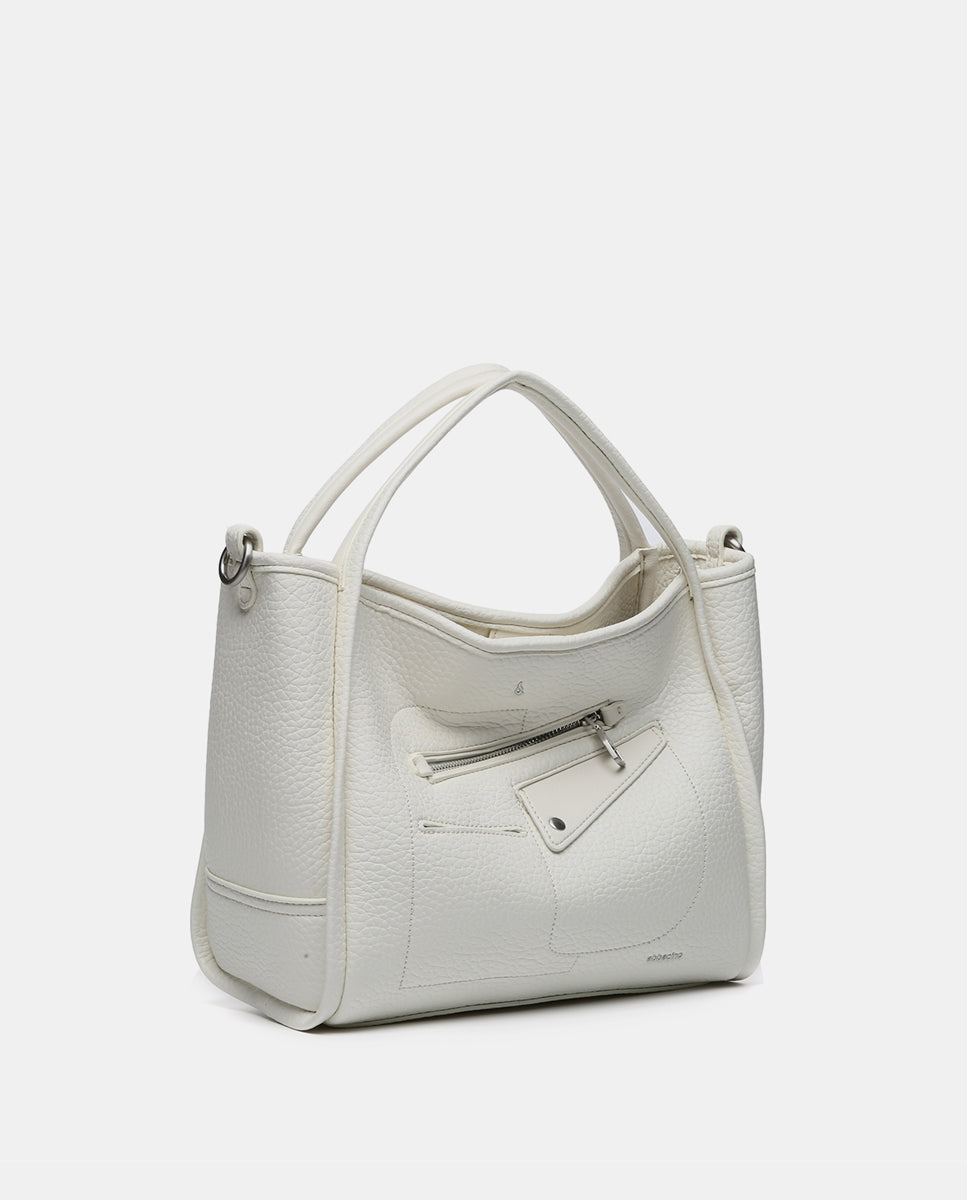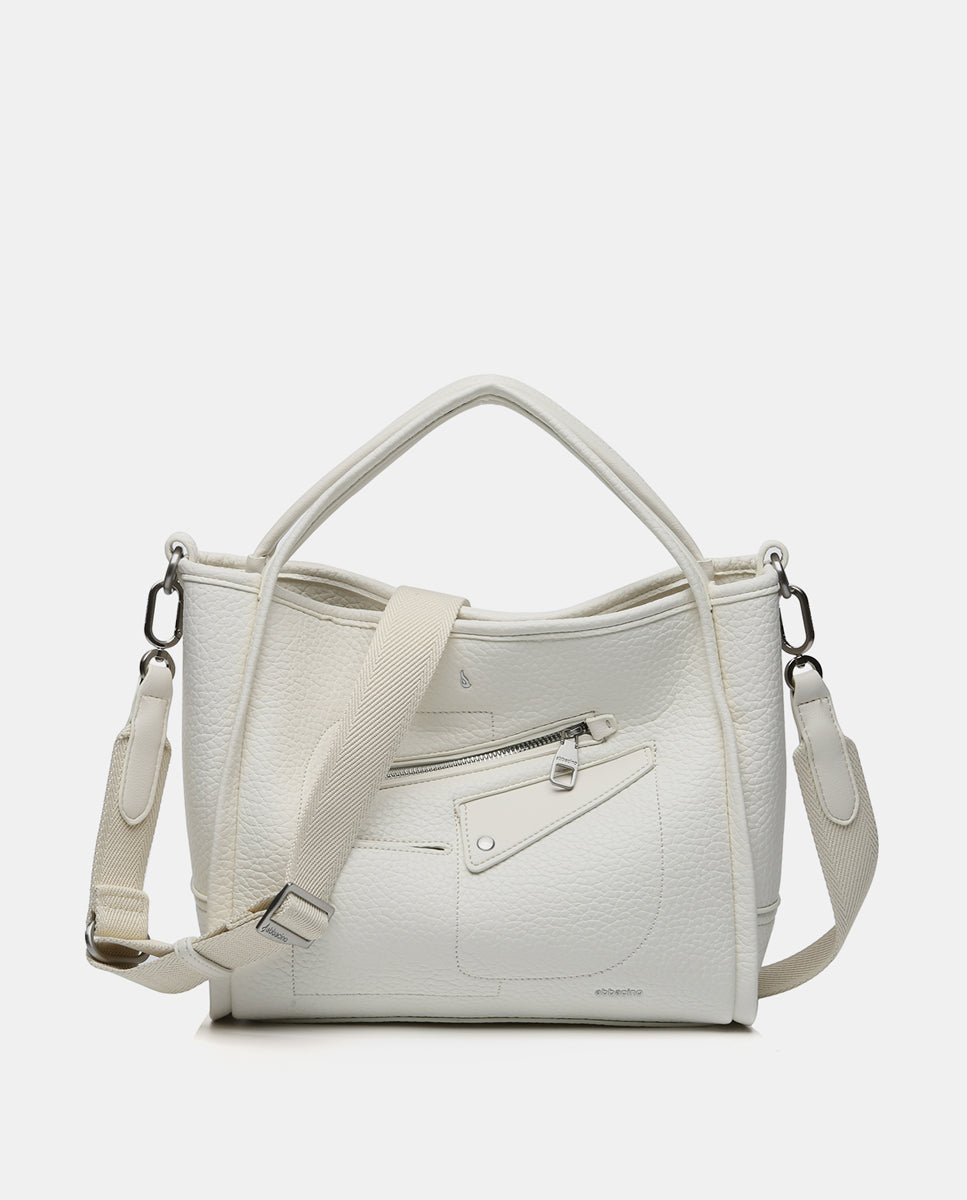 • Combines its double hand handles with a practical textile crossbody strap, which can be adjusted and is removable.