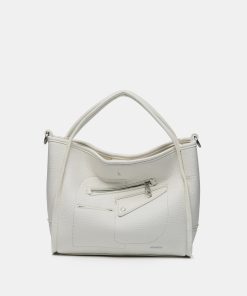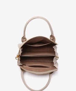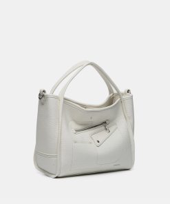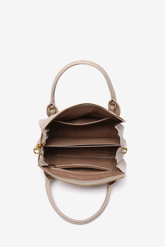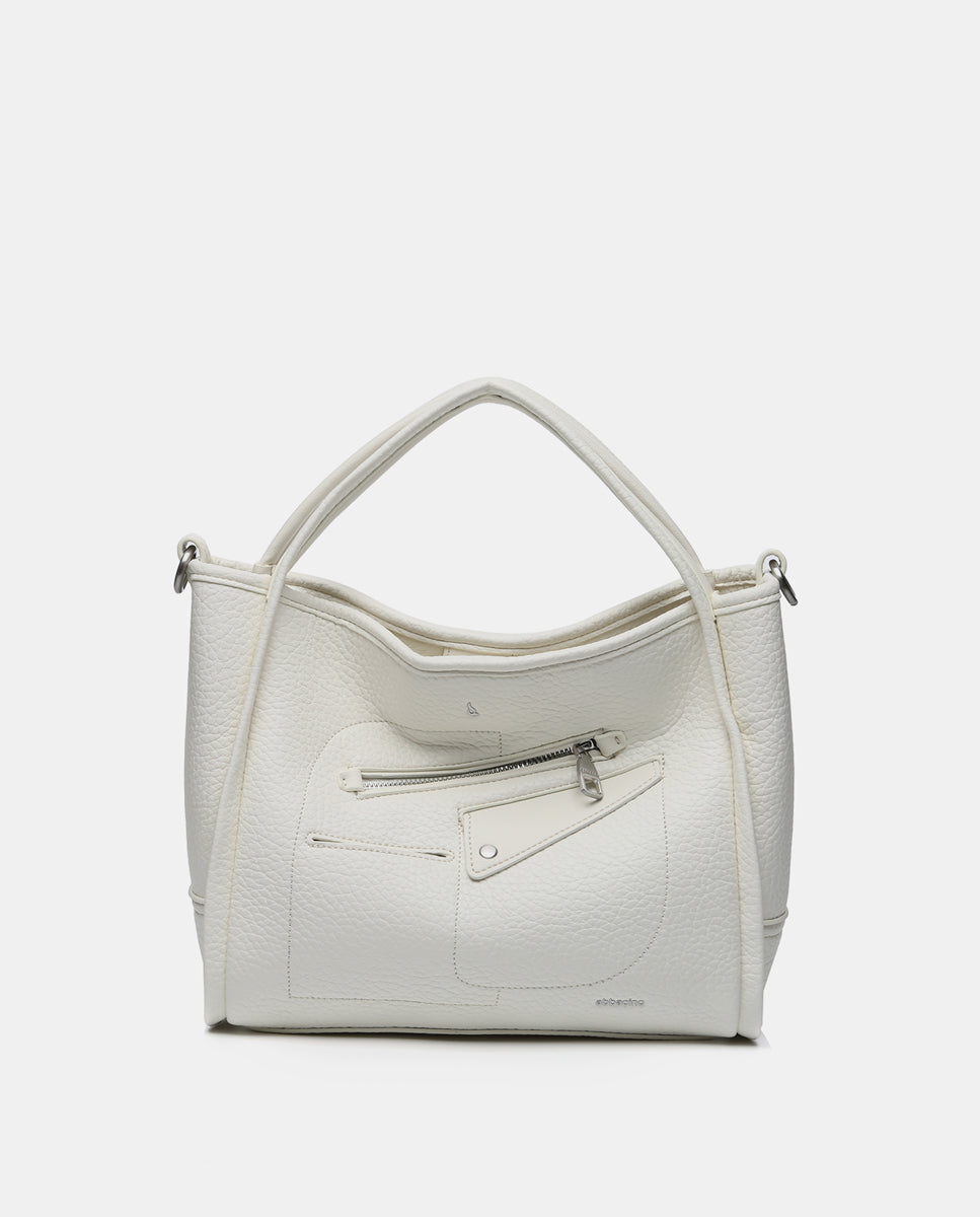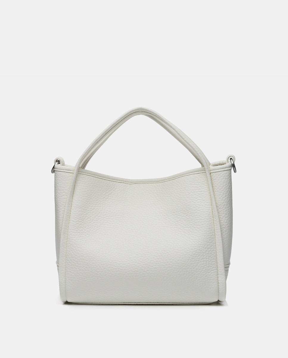 • Combines its double hand handles with a practical textile crossbody strap, which can be adjusted and is removable.