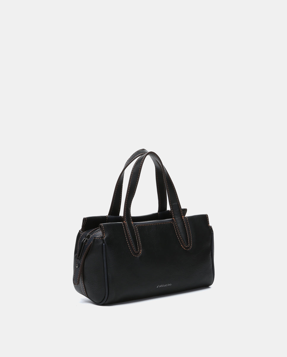 Handbag made from recycled materials with a textured finish and an elegant and versatile design. Compact and practical, perfect for everyday use. Its main features are: