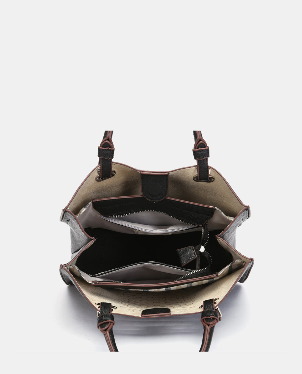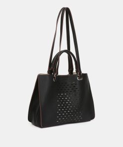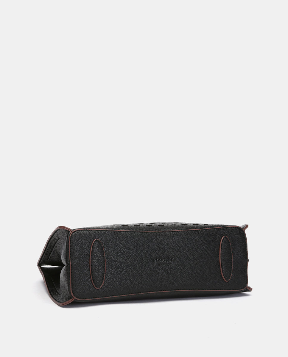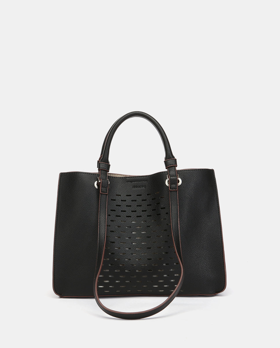 Lady-style handbag made from recycled materials, featuring a beautiful cut-out design on the front. A very feminine model with an elegant air and well-crafted finishes. Its main features are: