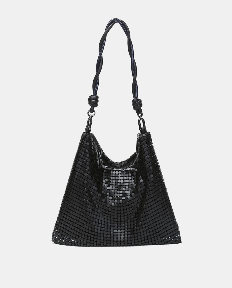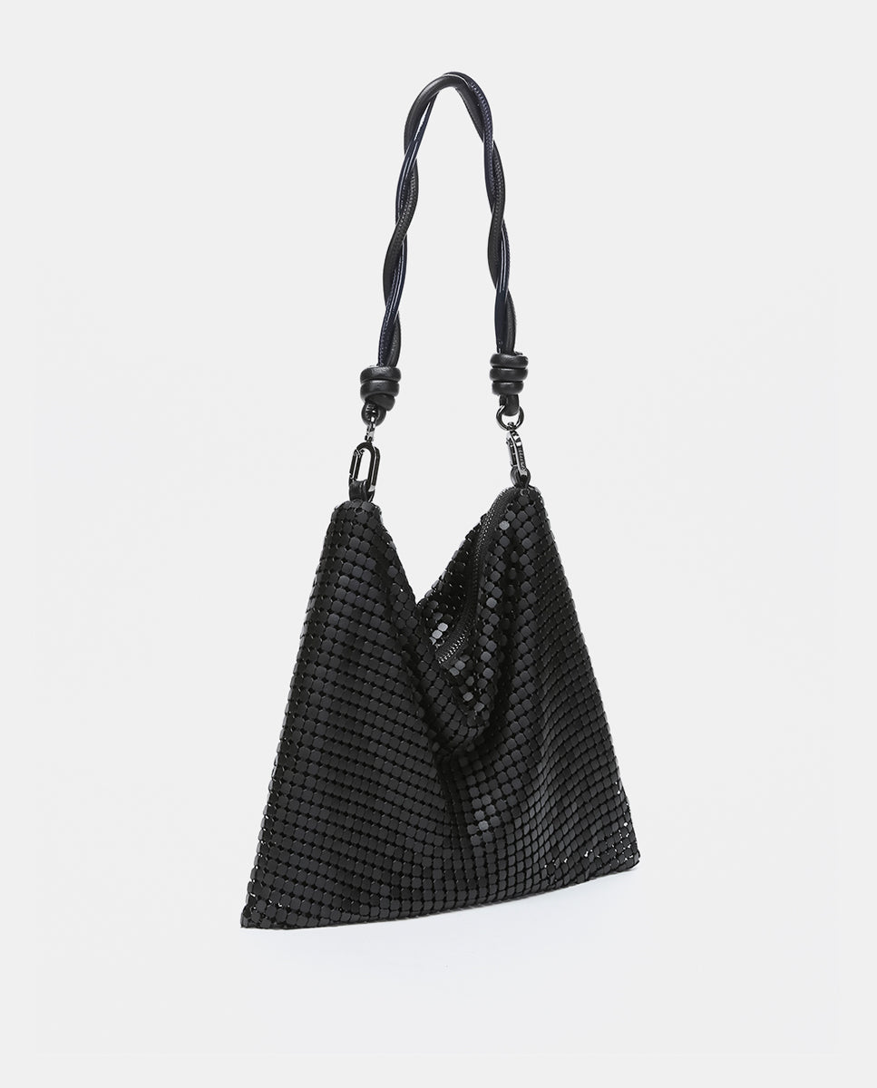 Abbacino Black Metal Mesh Shoulder Bag | Black | Bags Party