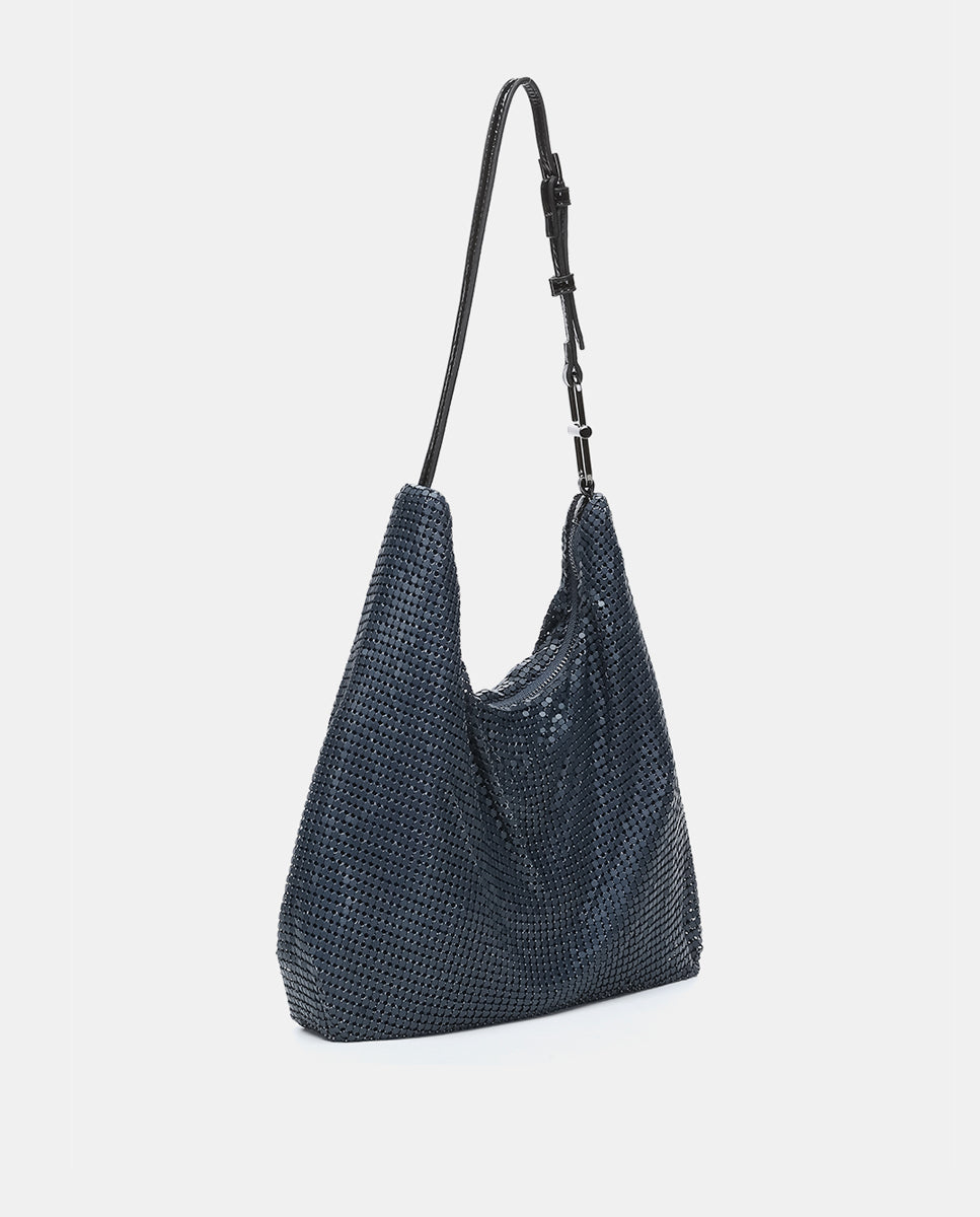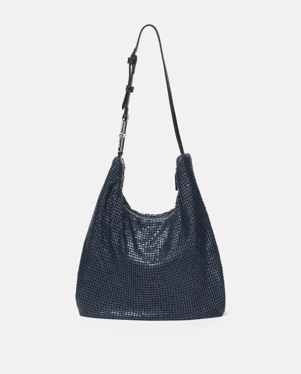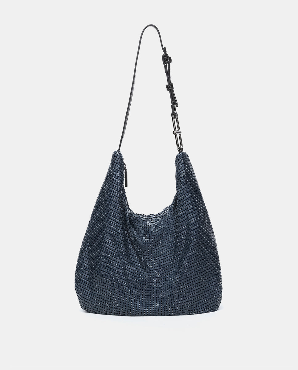 Abbacino Blue Metallic Mesh Shoulder Bag | Blue | Bags Party