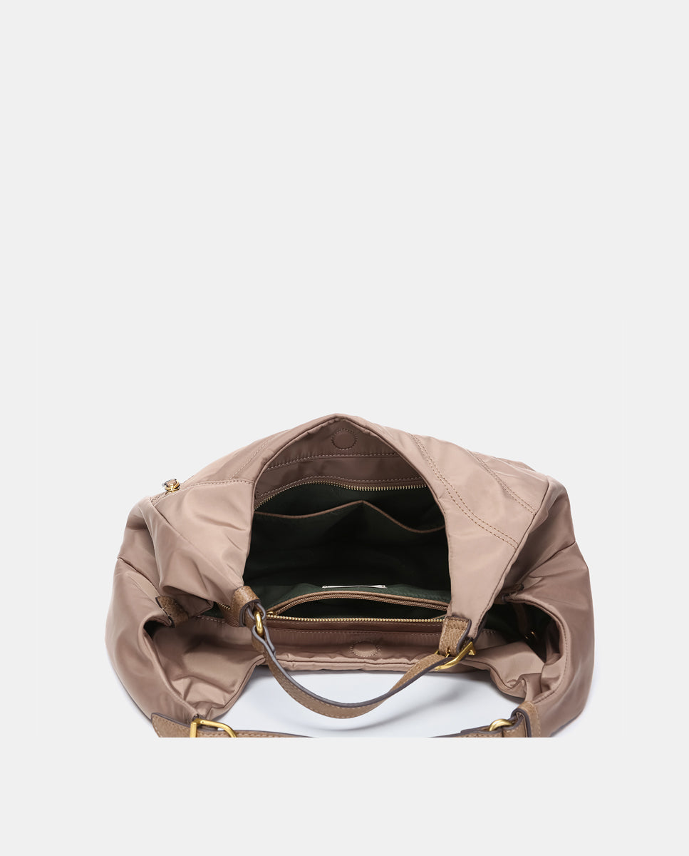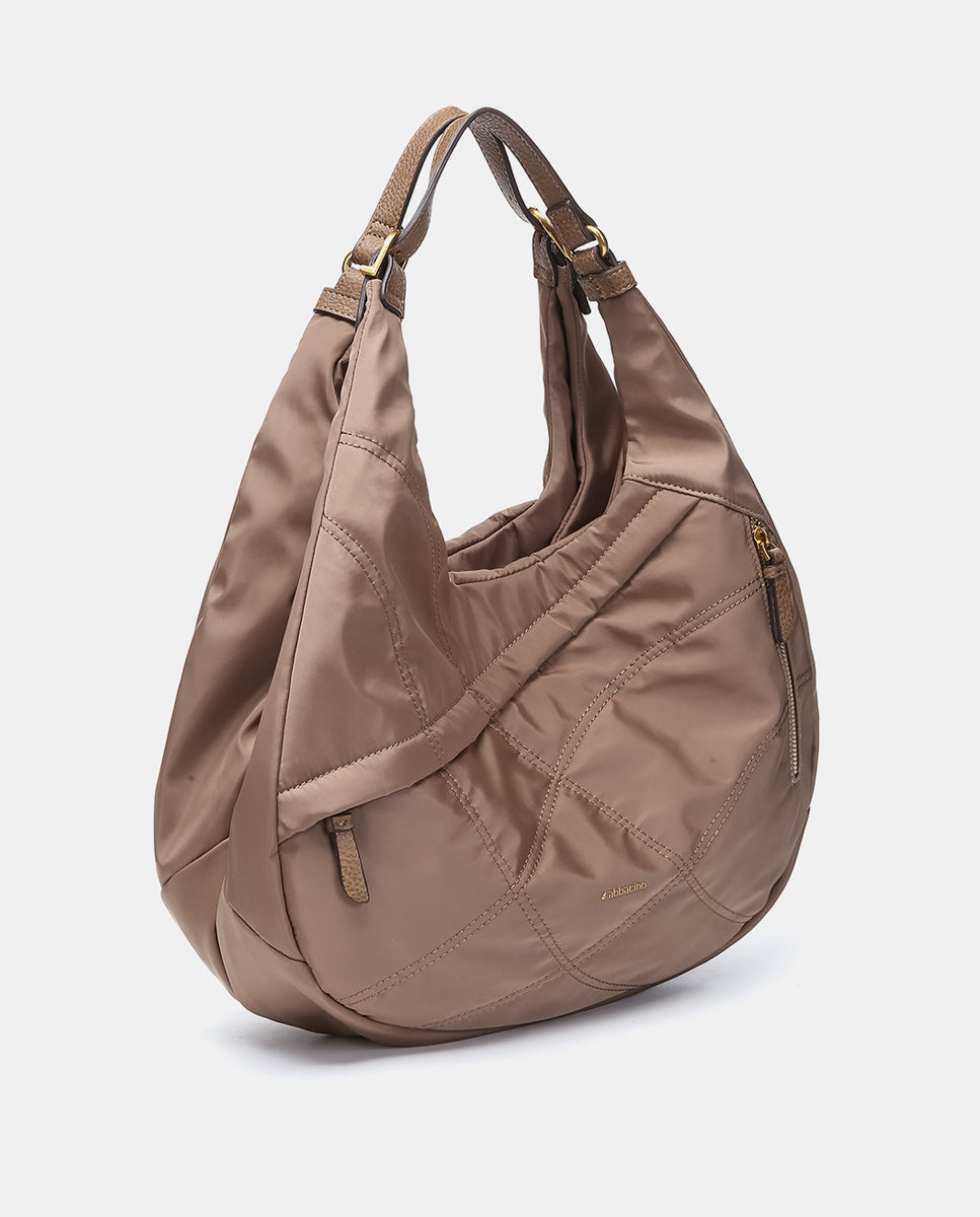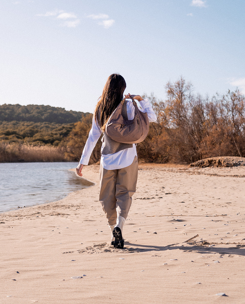 Women’s hobo-style shoulder bag made from recycled fabric with a satin finish. Sporty and functional, it’s ideal for fall and winter thanks to its seasonal colors. Practical and stylish, it’s perfect for everyday wear. Its main features are: