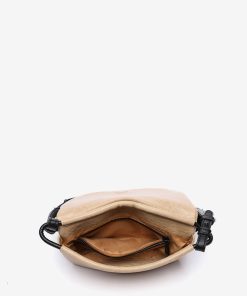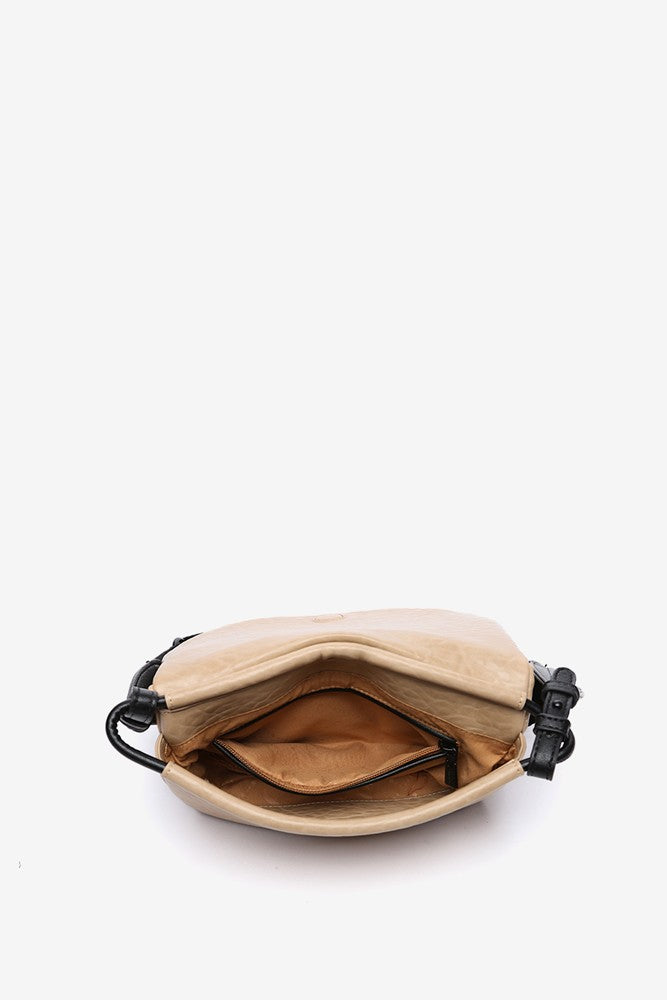 Women’s crossbody bag made from recycled materials. A design that features a lovely gathered front and the rustic texture of its material. Its main features are: