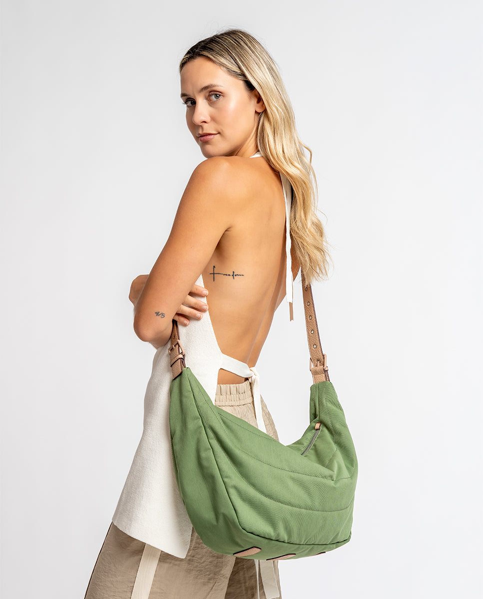 Women’s crossbody bag made from recycled and padded fabrics. A design dyed in summery colors, perfect for matching with your seasonal outfits. Casual and informal in style, this spacious bag allows you to carry your essentials wherever you go. Its main features are: