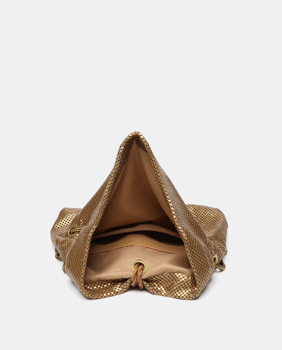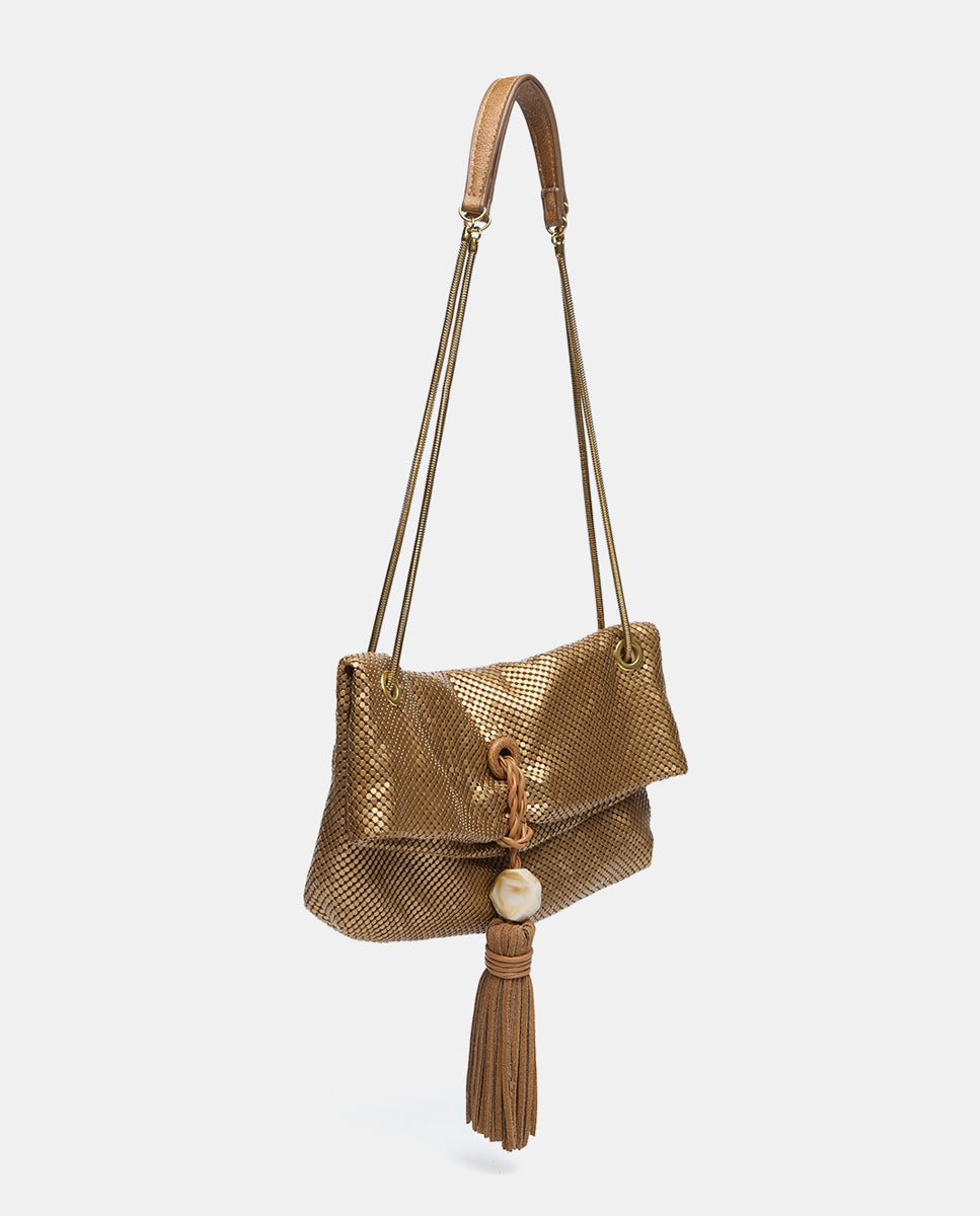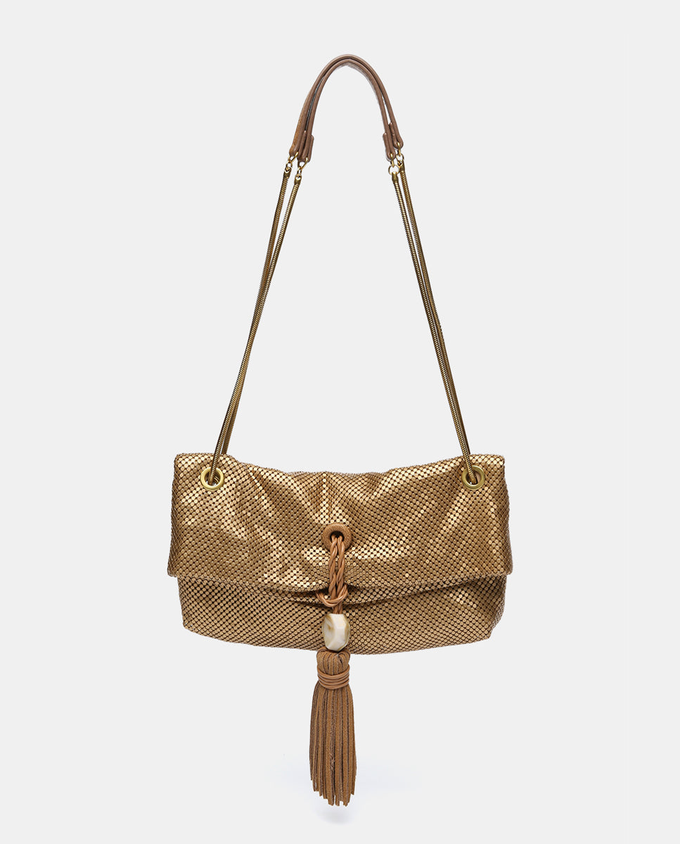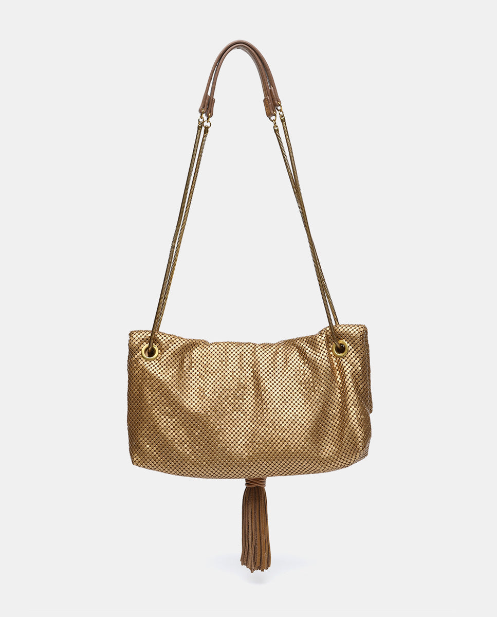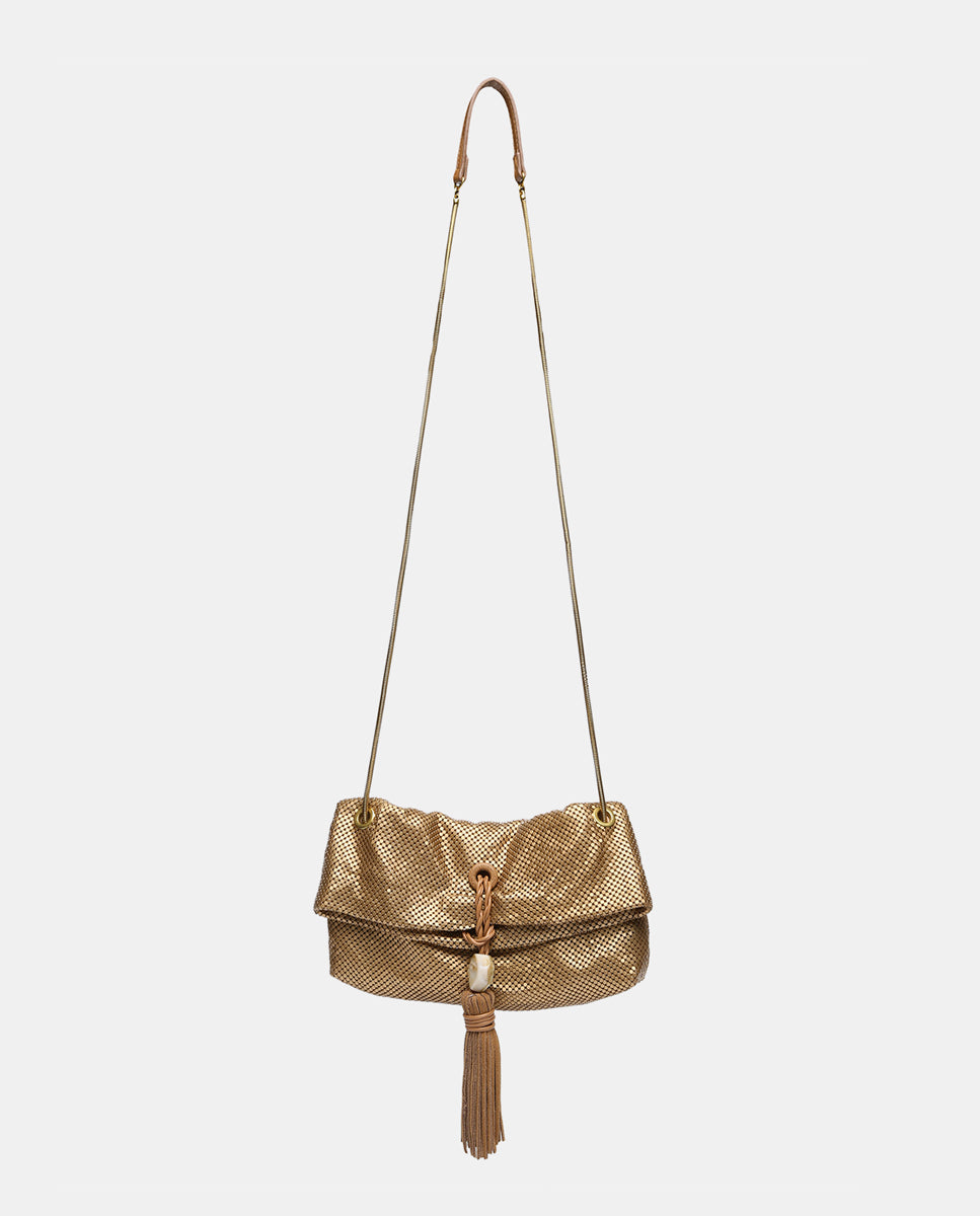 An original and bold party bag that will make you shine wherever you go. This model is an ideal option for creating unique looks that won’t go unnoticed. A rectangular design made with metallic mesh, perfect for special occasions. Its main features are: