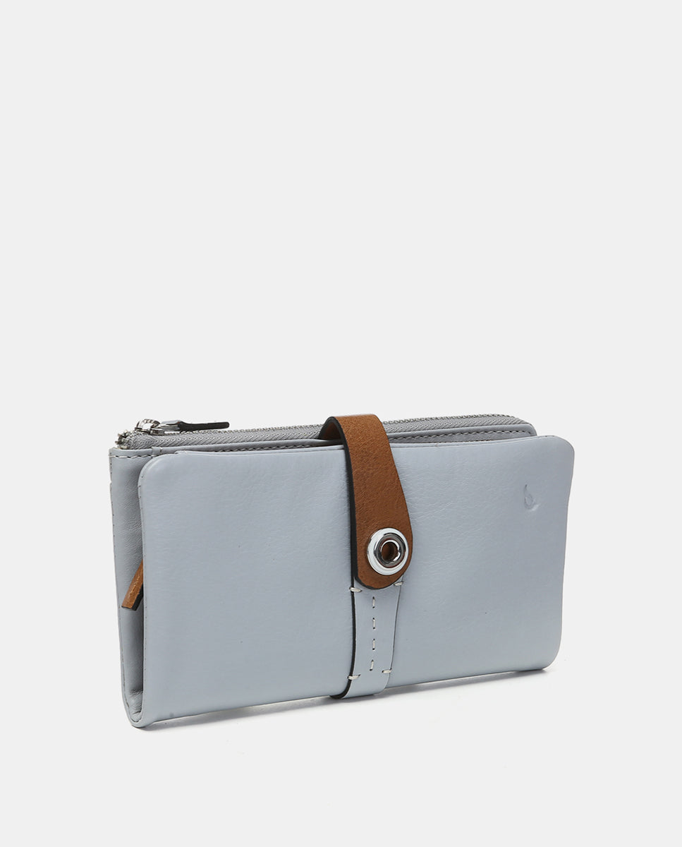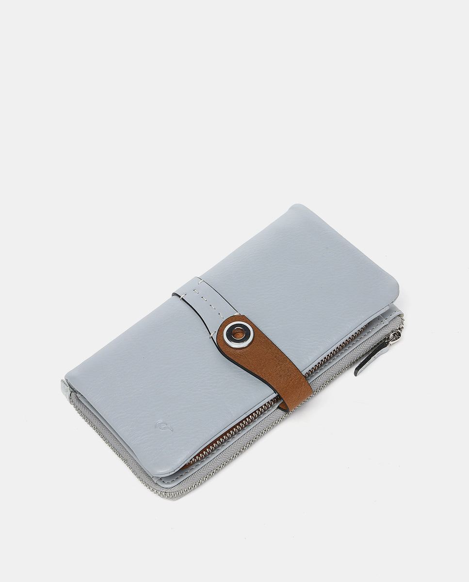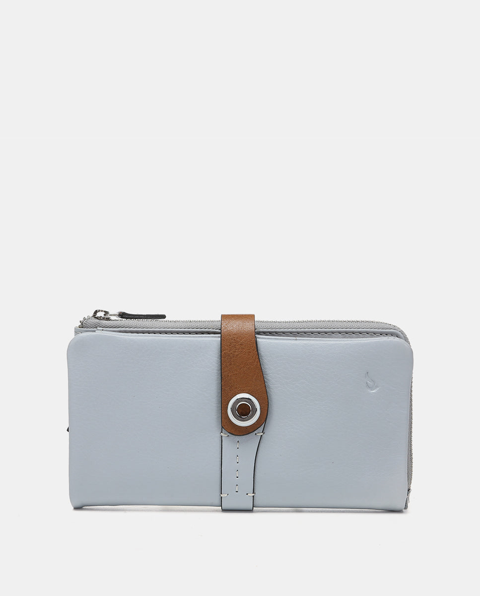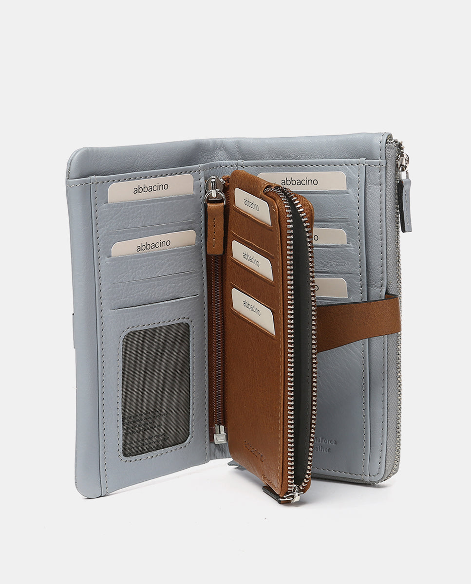Large women’s wallet made from leather that combines two color tones. A very original model dyed in summery colors with metallic accents. Its main features are: