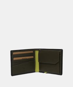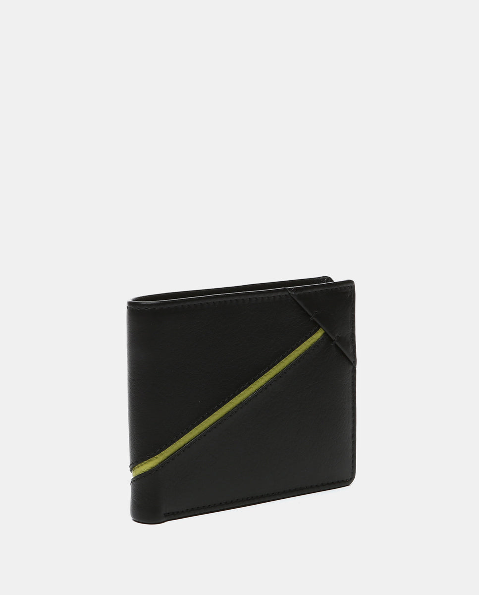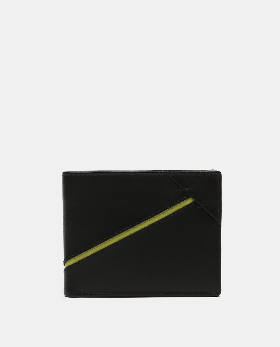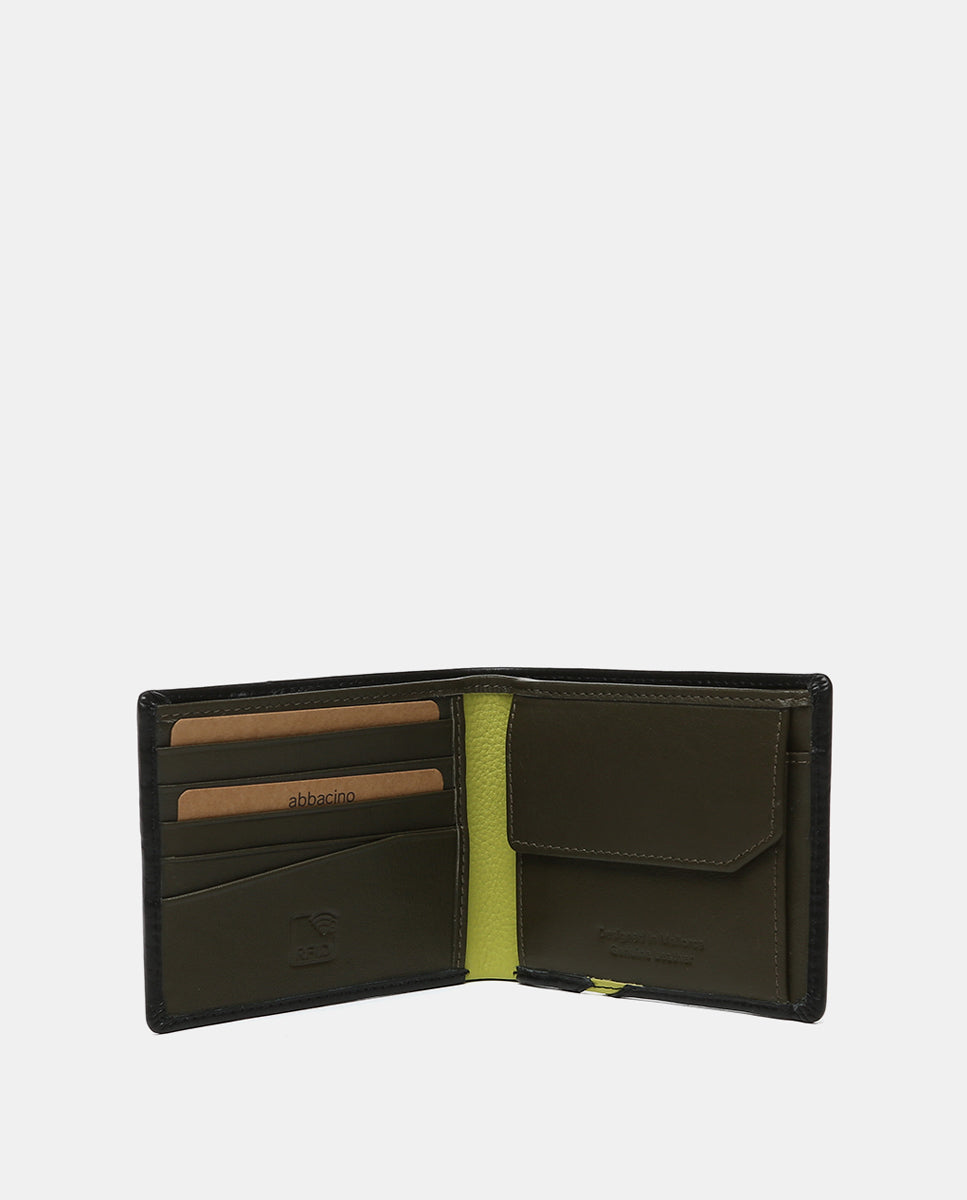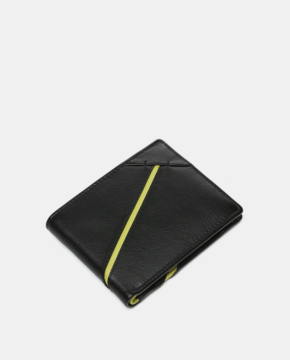 Men’s wallet made of cowhide leather. Its exterior features a fine color stripe that contrasts with the main tone. A very practical model with several organizational compartments for cards and bills. It also includes an interior coin pocket with a closure. RFID protection system.