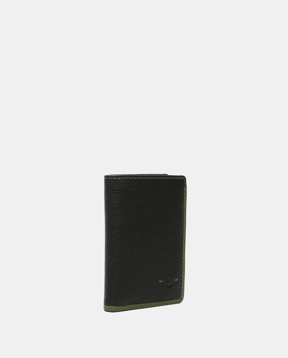 Men’s wallet made of cowhide leather. Its exterior features a fine color stripe that contrasts with the main tone and borders its edges. A very practical model with several organizational compartments for cards and bills. It also includes an interior coin pocket. RFID protection system.