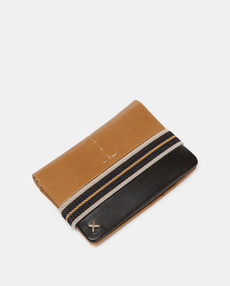 Men’s sport-style wallet made of cowhide leather. A very practical model with an elastic closure that combines two color tones. Inside, it features several organizational compartments for cards and bills. RFID protection system.