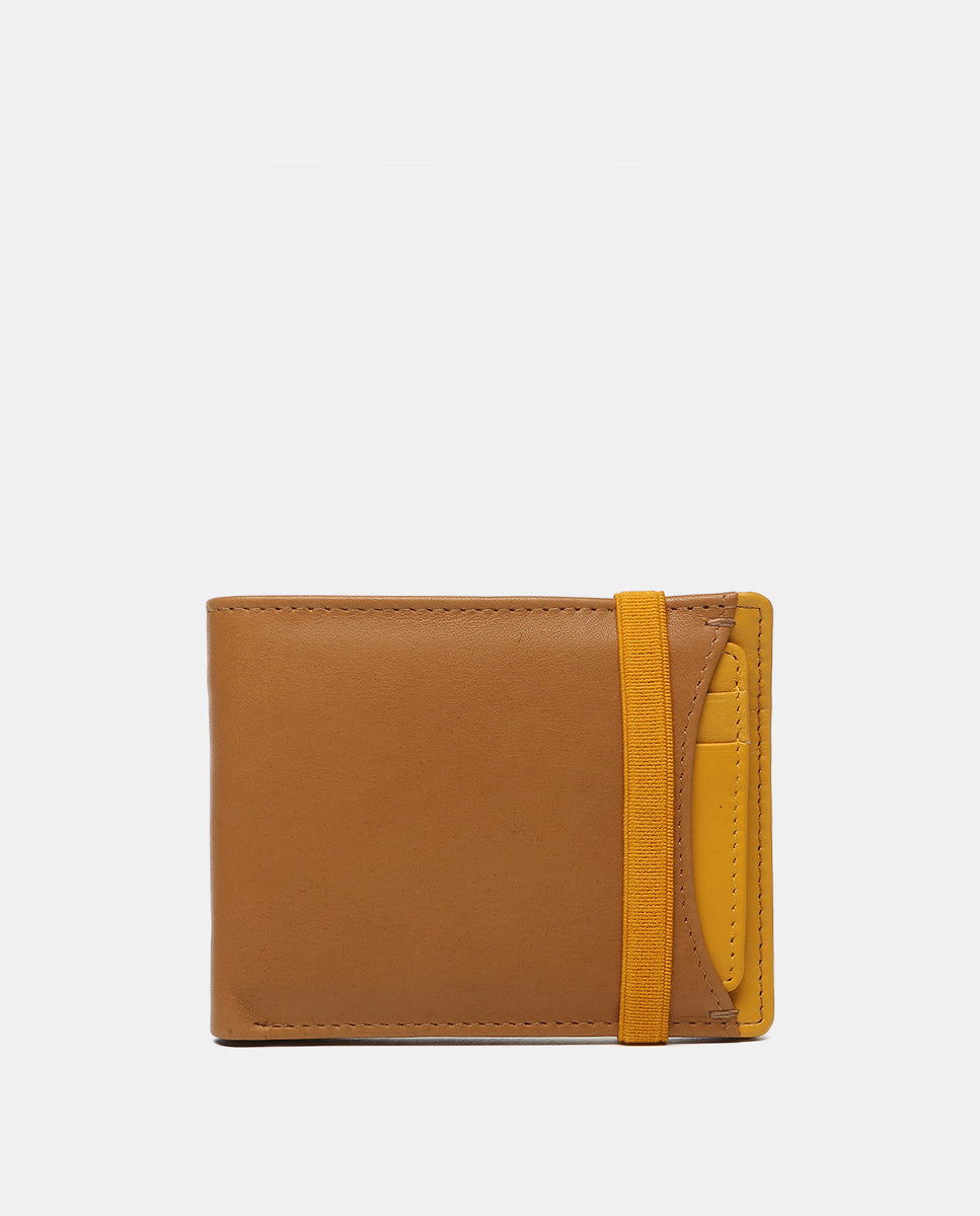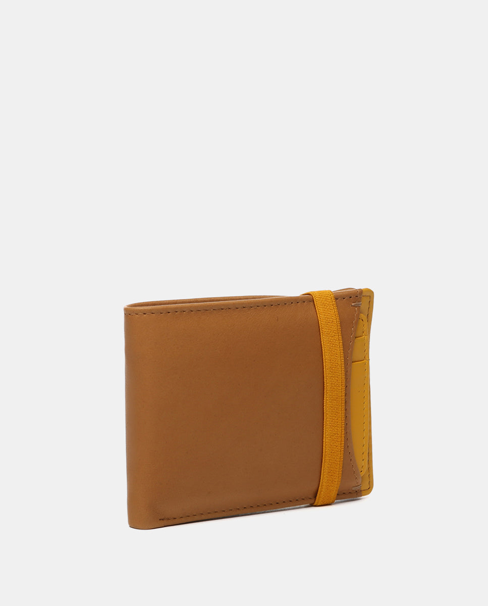 Small men’s wallet made of cowhide leather. A very practical model with an elastic closure that combines two color tones. It features several organizational compartments for cards and bills, an interior coin pocket, and an exterior removable cardholder. RFID protection system.