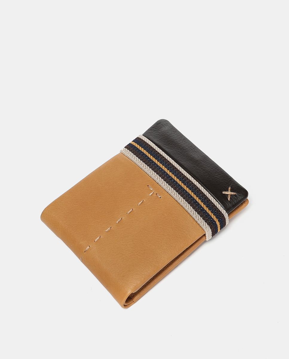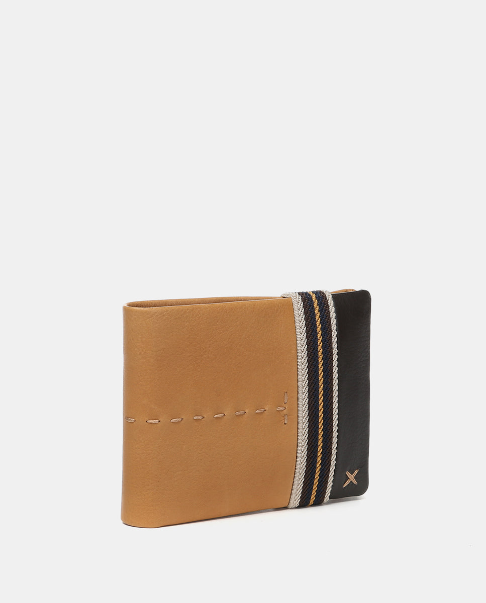 Men’s sport-style wallet made of cowhide leather. A very practical model with an elastic closure that combines two color tones. Inside, it features several organizational compartments for cards and bills. RFID protection system.