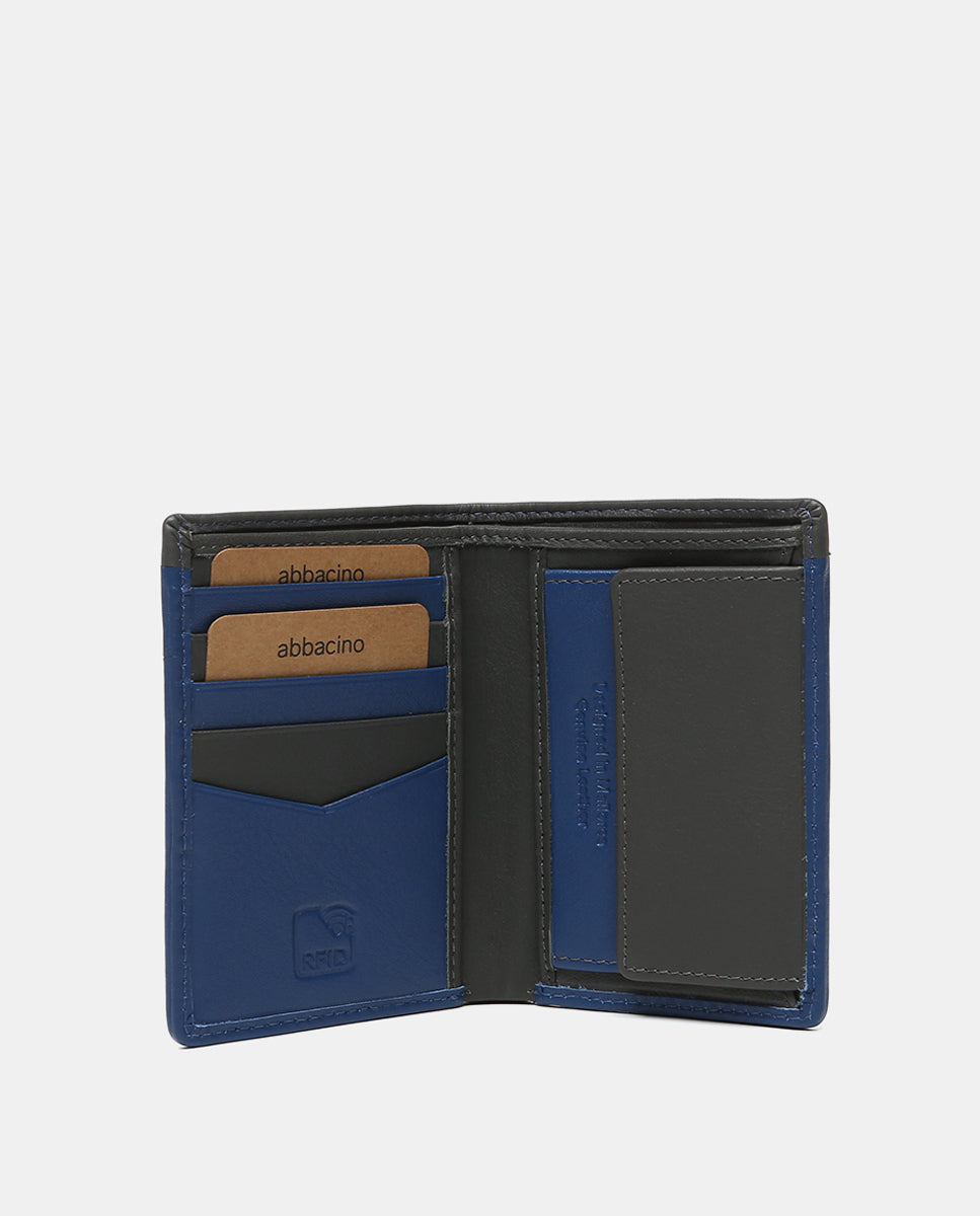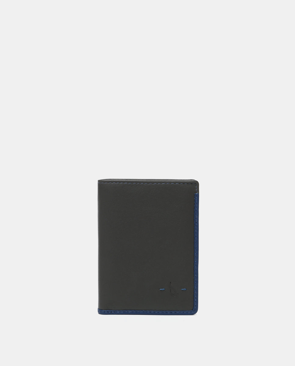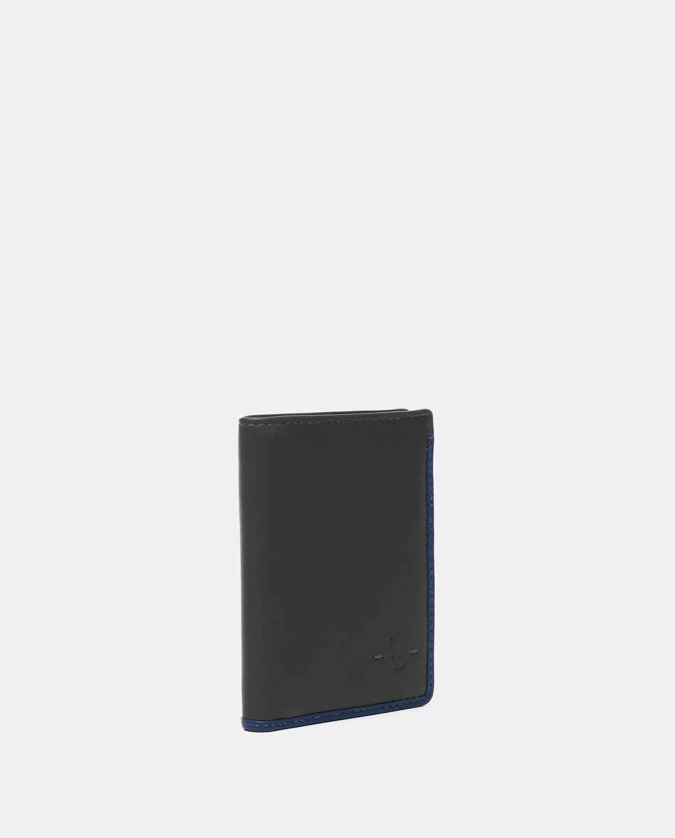 Men’s wallet made of cowhide leather. Its exterior features a fine color stripe that contrasts with the main tone and borders its edges. A very practical model with several organizational compartments for cards and bills. It also includes an interior coin pocket. RFID protection system.