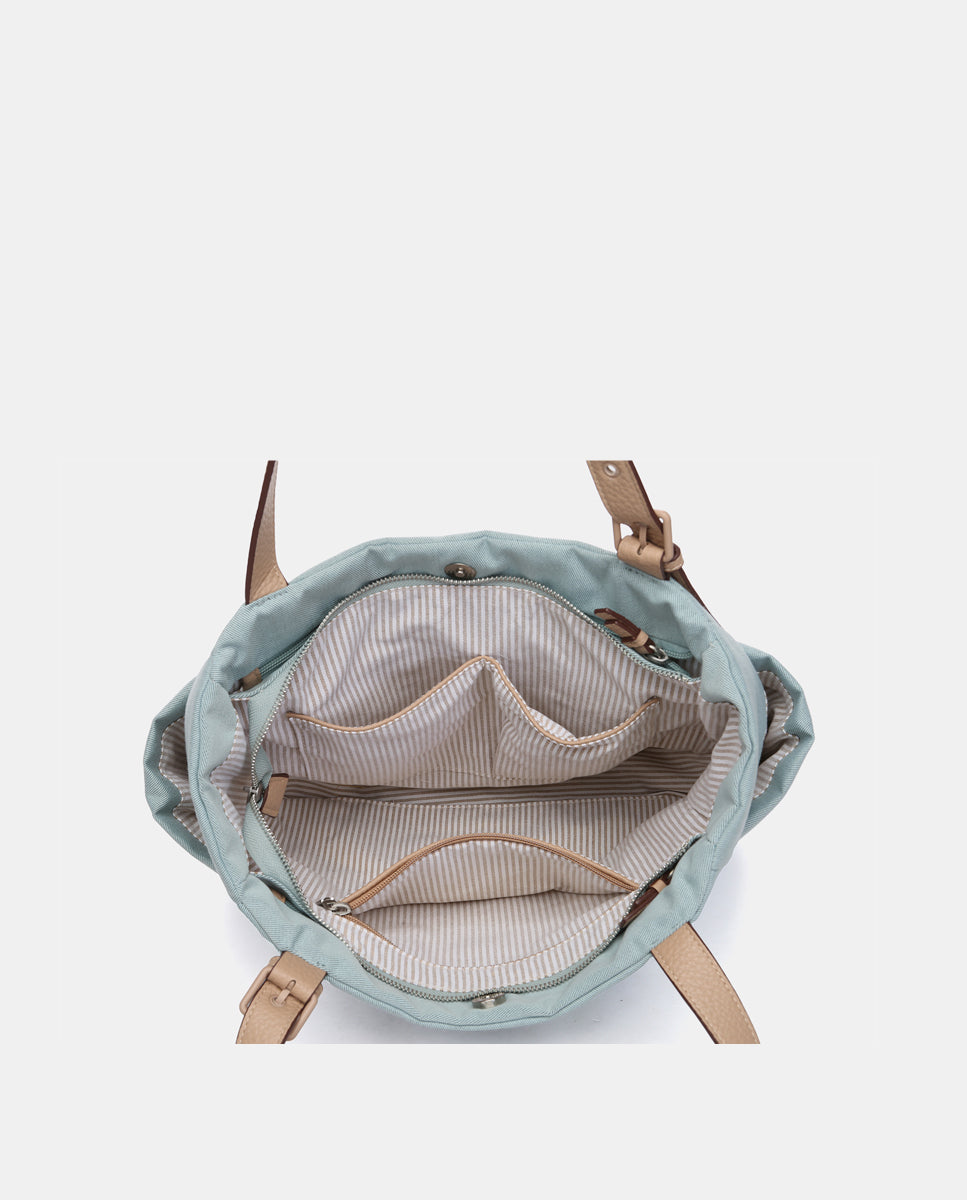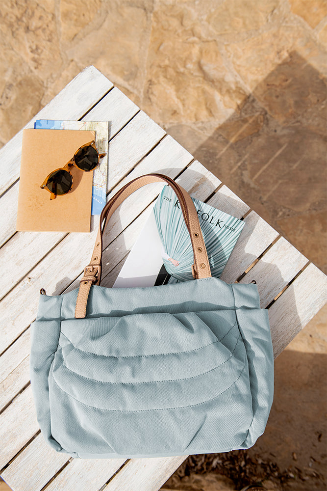 Women’s hobo bag made from recycled and padded fabrics. A design dyed in summery colors, perfect for matching with your seasonal outfits. Casual and informal in style, this spacious bag allows you to carry your essentials wherever you go. Its main features are: