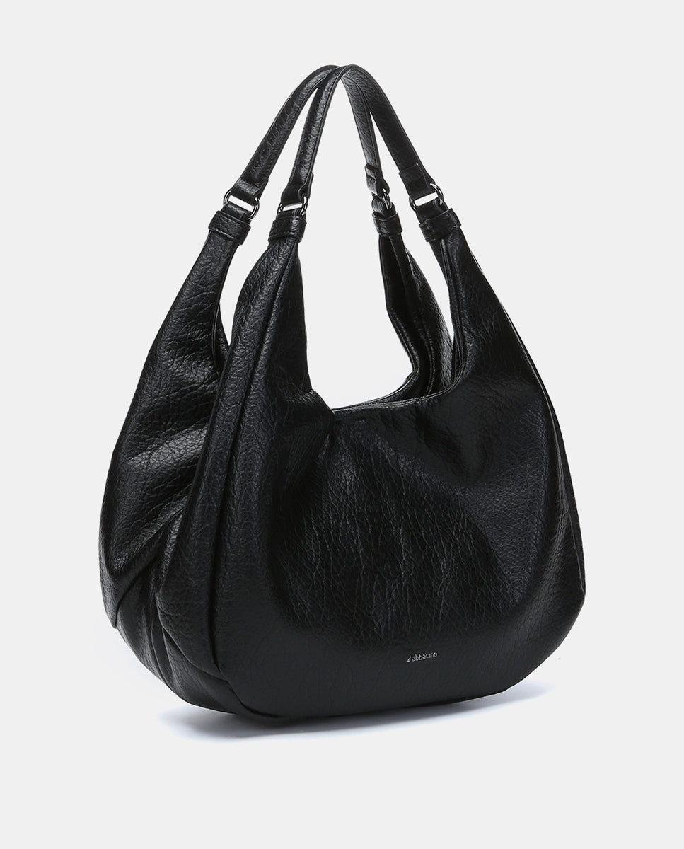 Hobo-style shoulder bag, made from recycled materials with a textured finish and an elegant and versatile design. Practical and sophisticated, it’s ideal for everyday use. Its main features include: