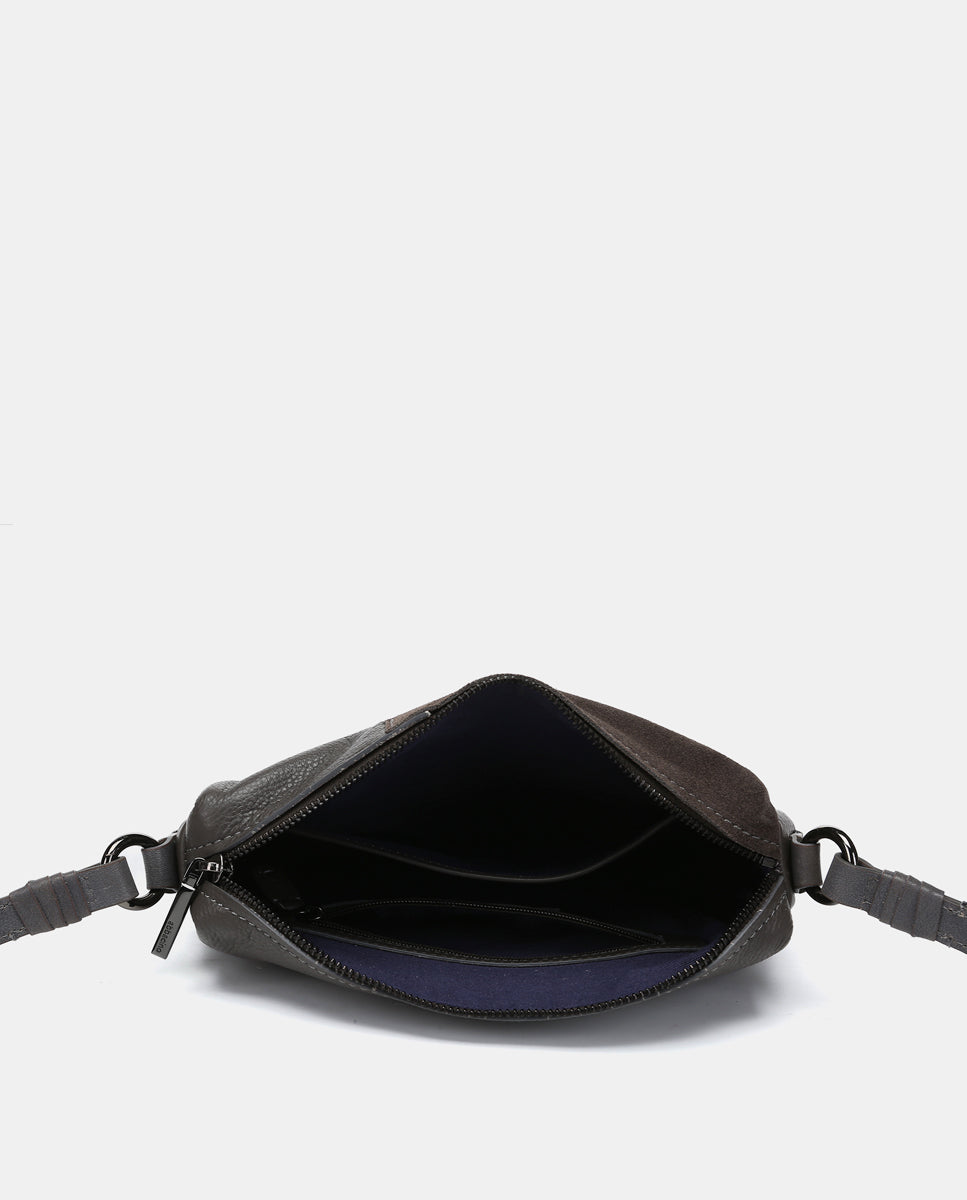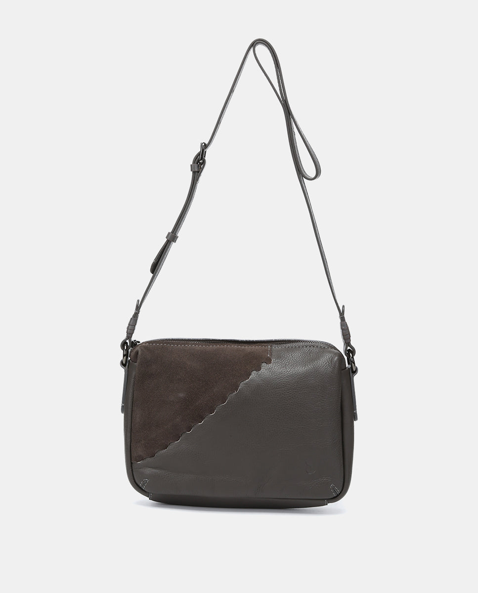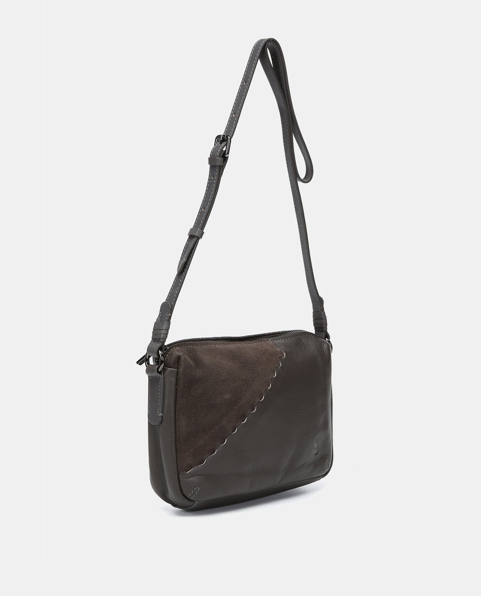 Women’s crossbody bag that combines leather and suede, creating an elegant contrast of textures, perfect for everyday use. Its main features are: