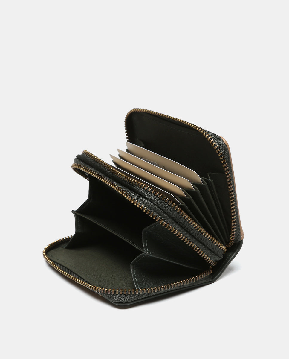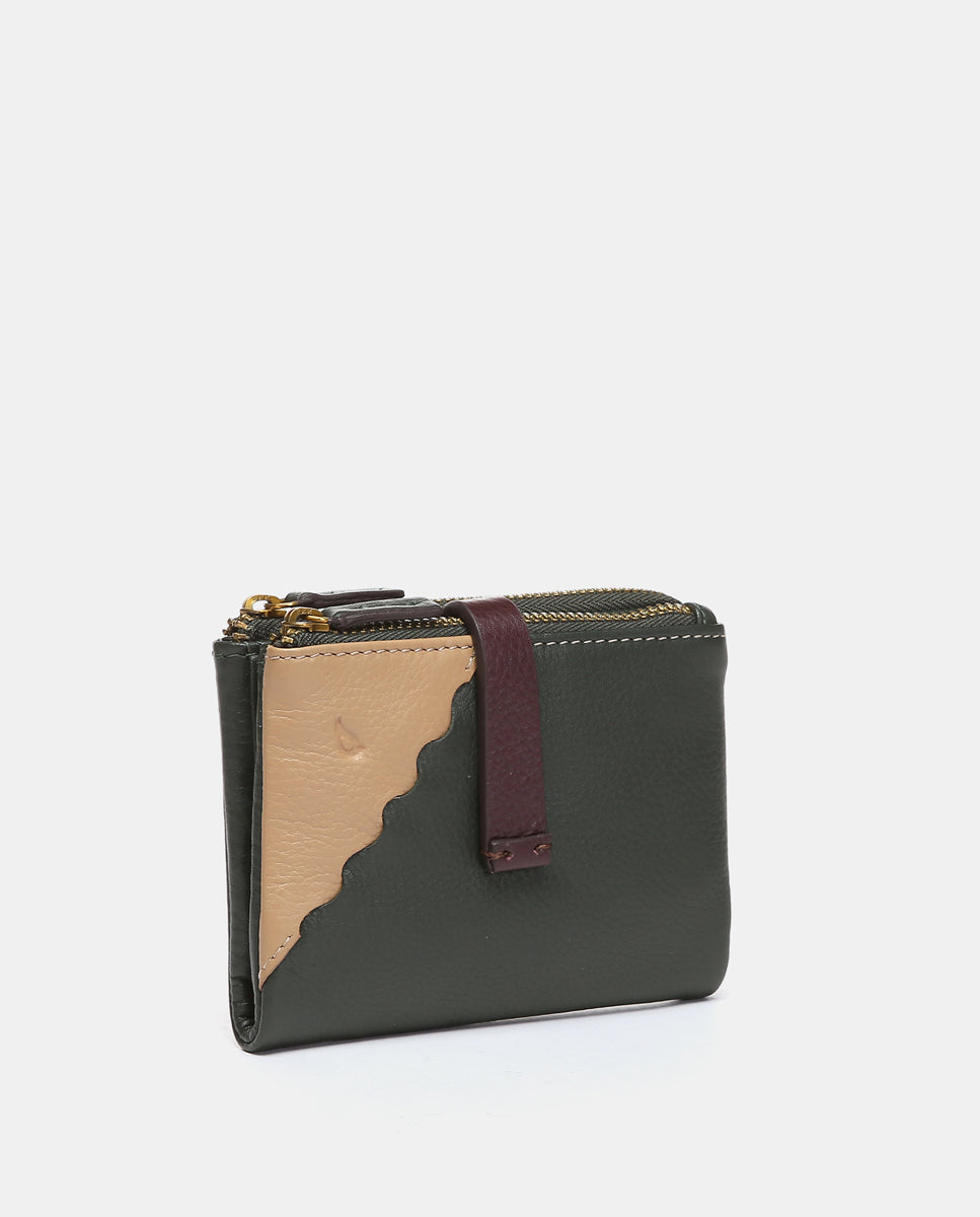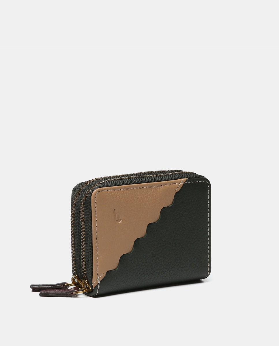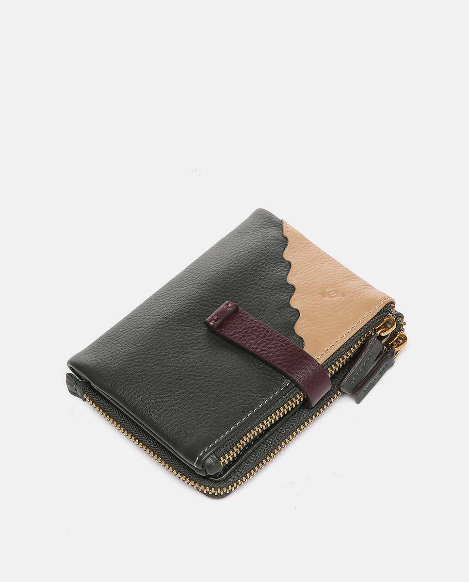 Small accordion-shaped women’s wallet, crafted from cowhide in two shades. Its unique and functional design makes it an elegant accessory. Its main features are: