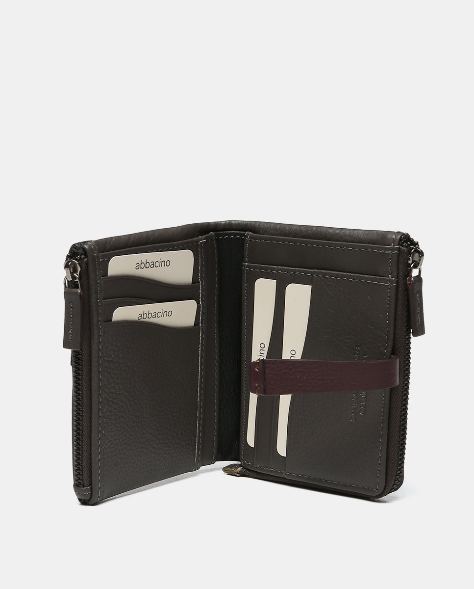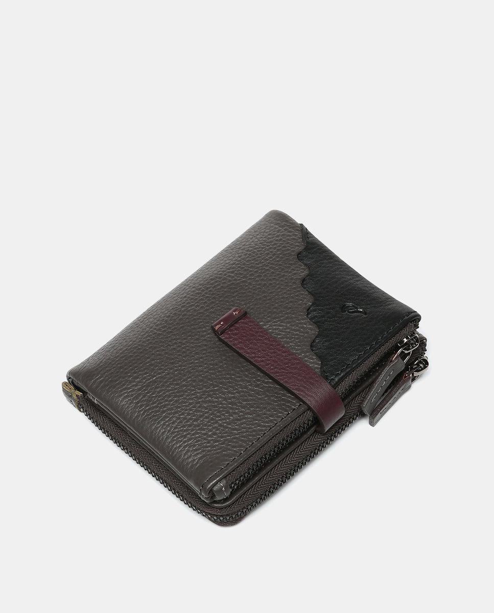 Small women’s wallet made of cowhide leather, combining two shades and featuring a wavy band on the front. Compact and practical, it’s perfect for those looking for style and functionality. Its main features are: