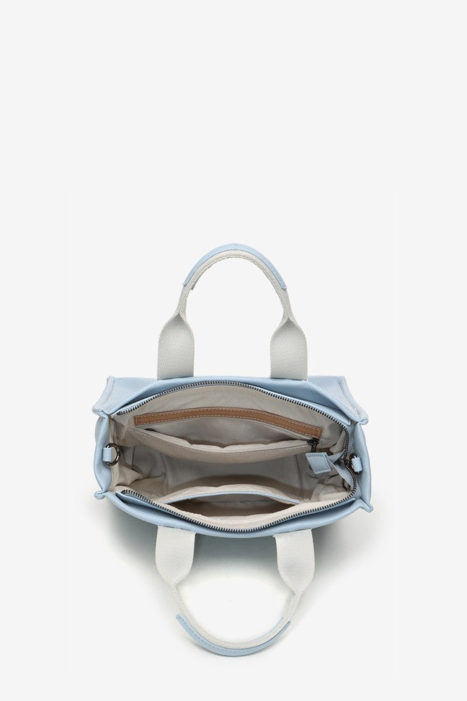 • It combines its double hand strap with a practical shoulder strap personalised with the Abbacino logo, which can be adjusted and is removable.