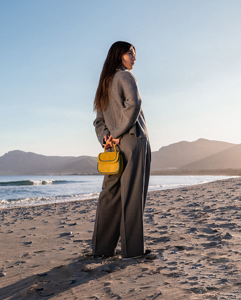 Abbacino Yellow Leather And Suede Shoulder Bag | Yellow | Bags Leather